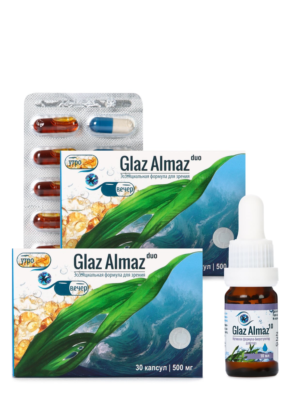Состав гидрофильной формы (при катаракте): концентраты черники, очанки, лимонника, боярышника, шиповника, облепихи, годжи, голубики, пассифлоры, семян амаранта, семян винограда, эхинацеи, крапивы, жимолости, мелиссы, лещины, заманихи, гиалуроновая кис-лота, глюкозамина гидрохлорид, дигидрокверцетин, таурин, лецитин, холин, лизин, глутатион, глицин, изолейцин, витамин В1, В2, В6, В12, магния цитрат, цитруллин, морской коллаген, кэроб, олигофруктоза.