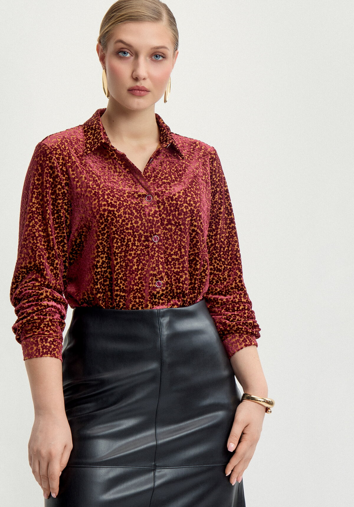 Изысканная блуза классического прямого силуэта сочетает в себе элегантность и практичность. Модель привлекает внимание стильным воротником-стойкой и удобной планкой на пуговицах по переду. Рукава полной длины с манжетами добавляют образу утонченности и завершенности.