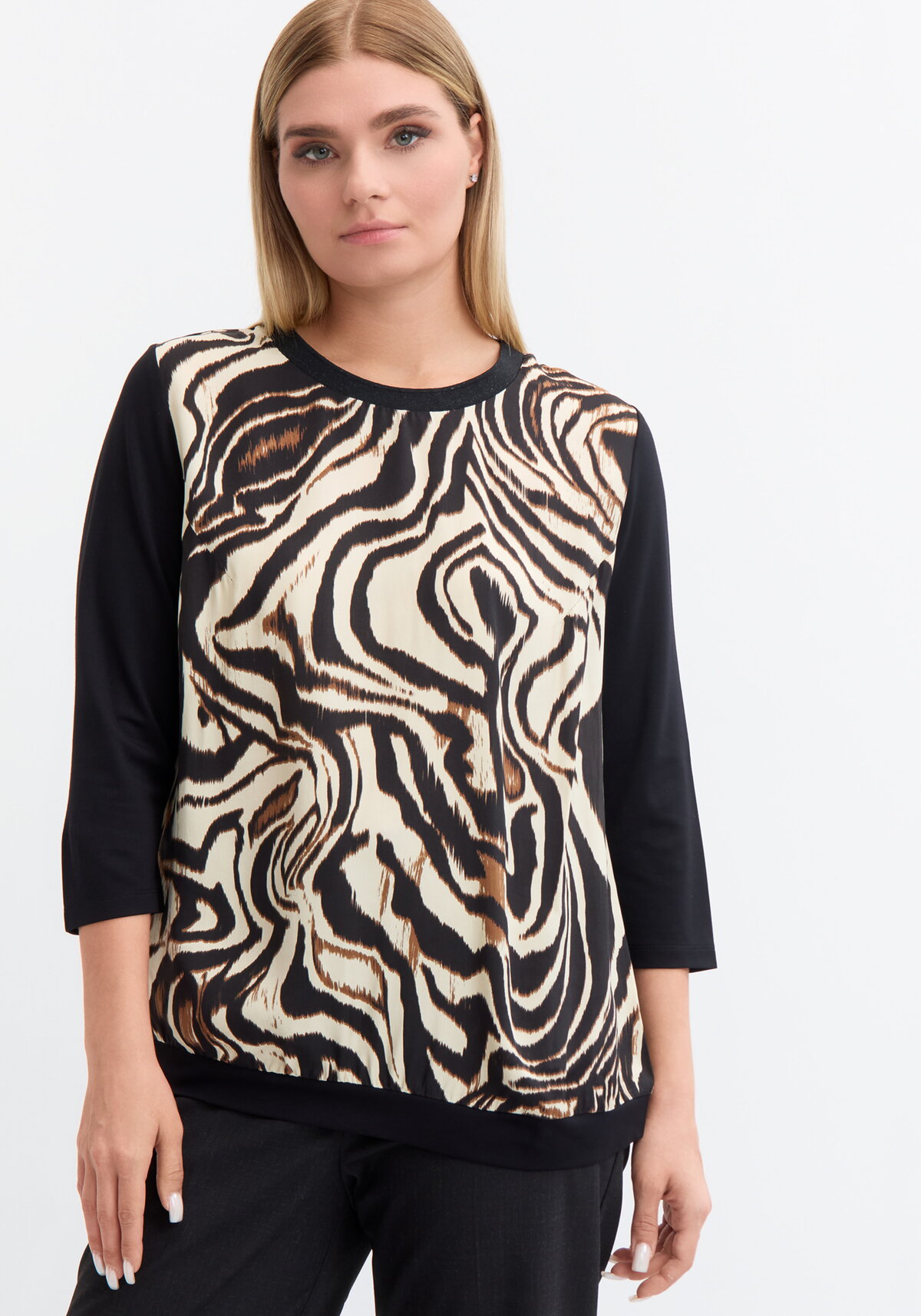 Блуза с анималистичным принтом. Рукав 3/4. Круглый вырез горловины.