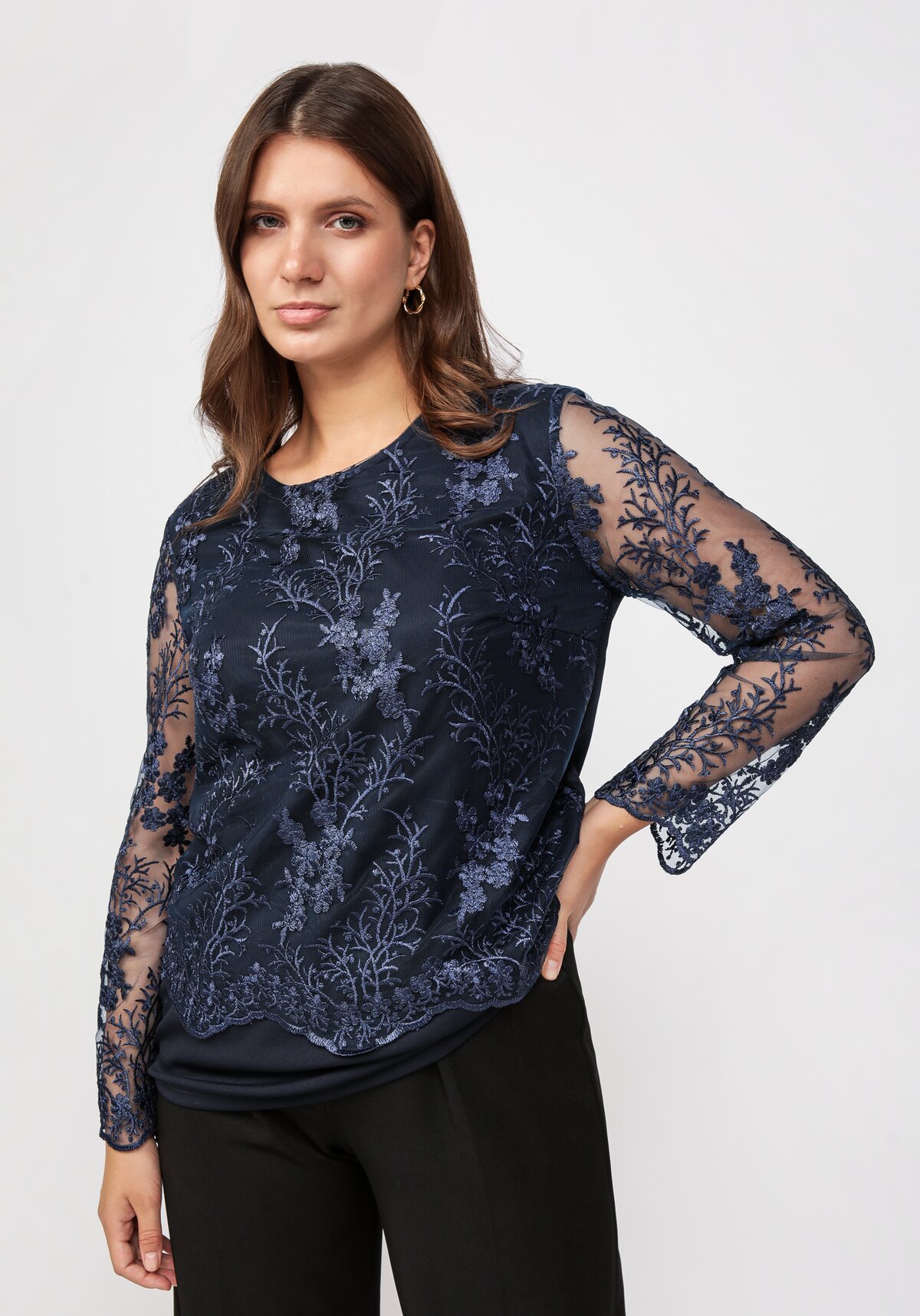 Очаровательная блуза с имитацией топа и накидки. «Изюминку» модели придает роскошная вышивка. В таком наряде вы не останетесь незамеченной. Удлиненная блуза хорошо сочетается с низом разного фасона. Элегантный рукав 7/8. Красивые расцветки.