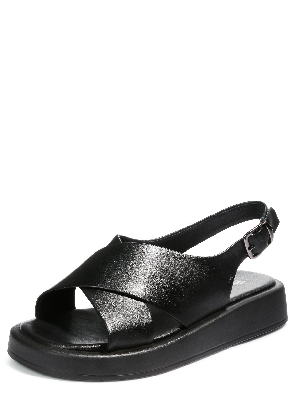 Босоножки от российской марки SHOIBERG из натуральной кожи — стильная летняя обувь. Стелька из искусственной кожи обеспечивает оптимальный микроклимат. Модель представлена в трех цветах: черный, рептилия, молочный.