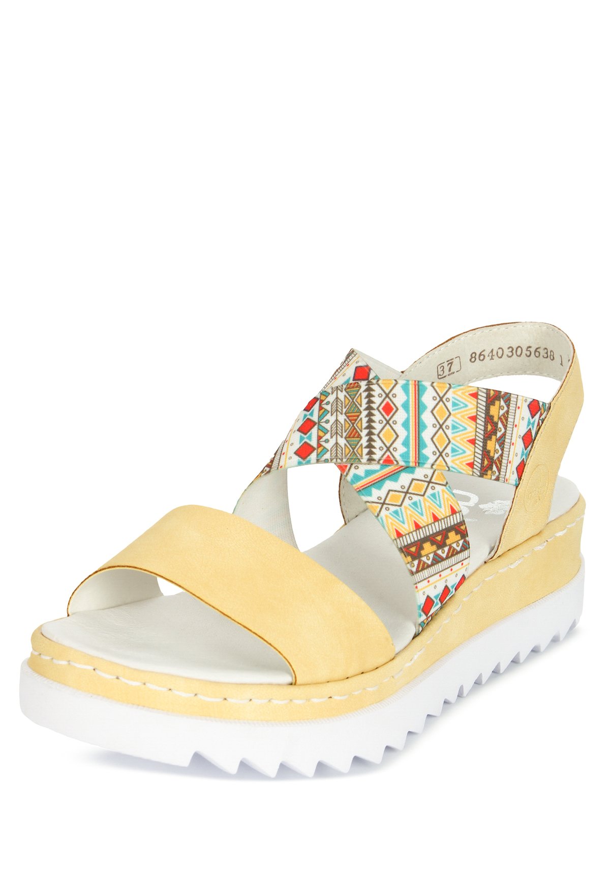 Босоножки из искусственной кожи от немецкой марки Rieker — стильная летняя обувь. «Дышащая» стелька препятствует чрезмерному потению ноги и выводит лишнюю влагу. Модель представлена в четырех цветах: синий, розовый, желтый, белый.