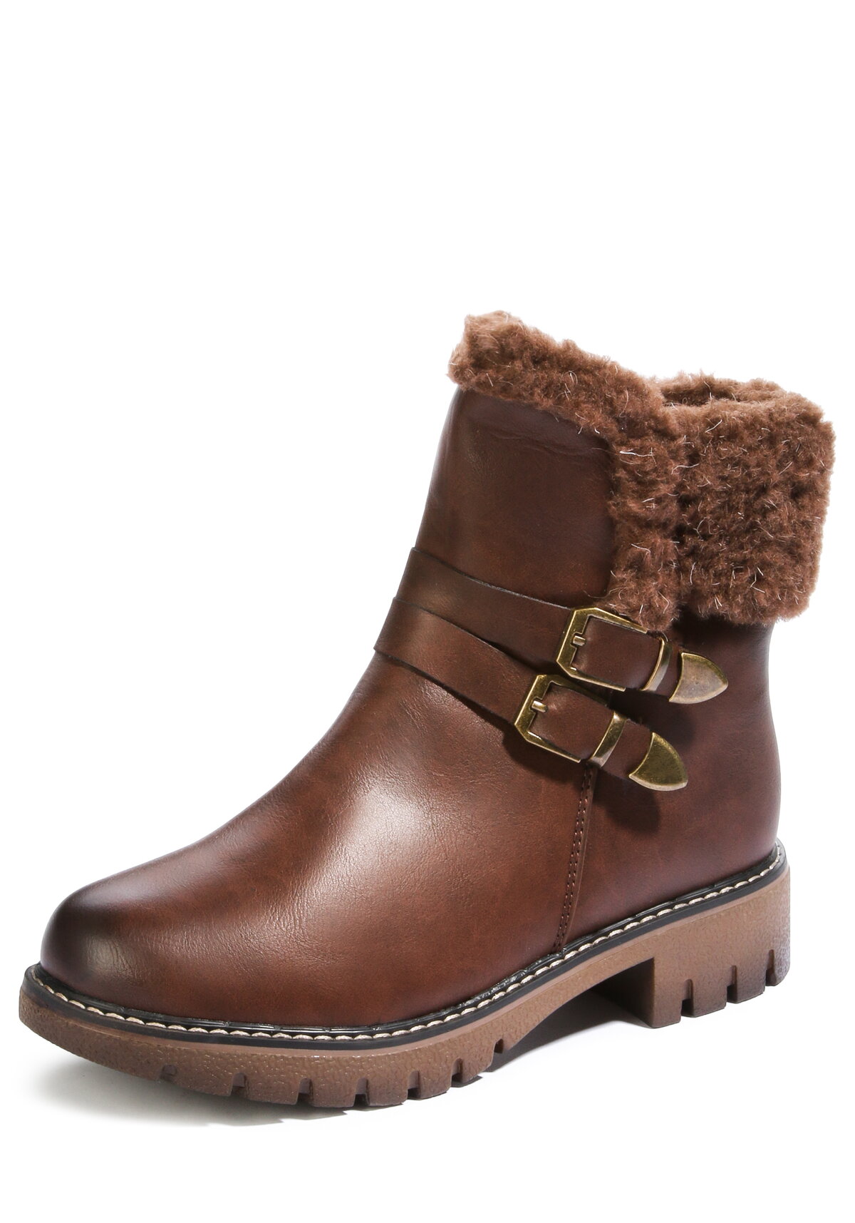 Ботинки сочетают в себе практичность и стиль. Качественный искусственный мех обеспечивает теплоизоляцию и комфорт в холодную погоду. Застежка-молния делает их легкими и удобными при надевании и снятии.