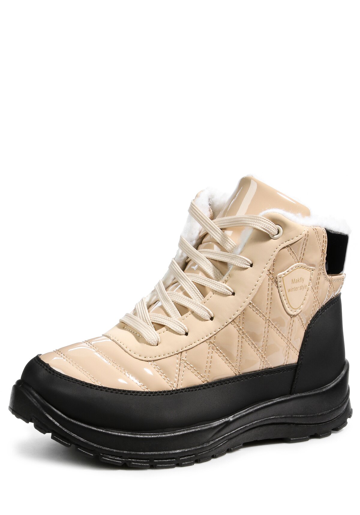 Ботинки из непромокаемой искусственной кожи от российской марки Makfly обеспечат комфорт как в условиях города, так и на природе. Шерстяной подклад отлично согревает ноги и не пропускает холод. Модель представлена в трех цветах: бежевый, бордовый, белый.