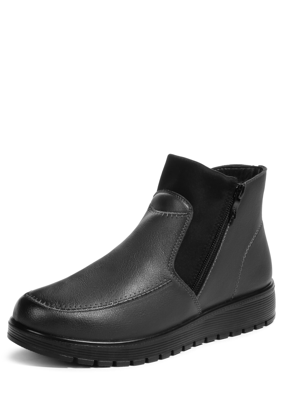 Ботинки из экокожи — прочные и износостойкие, а также обладаю влагоотводящими свойствами. Подклад выполнен из байки, что не позволит замёрзнуть ножкам в прохладное время года. Модель представлена в трех цветах: темно-бежевый, графитовый, черный.