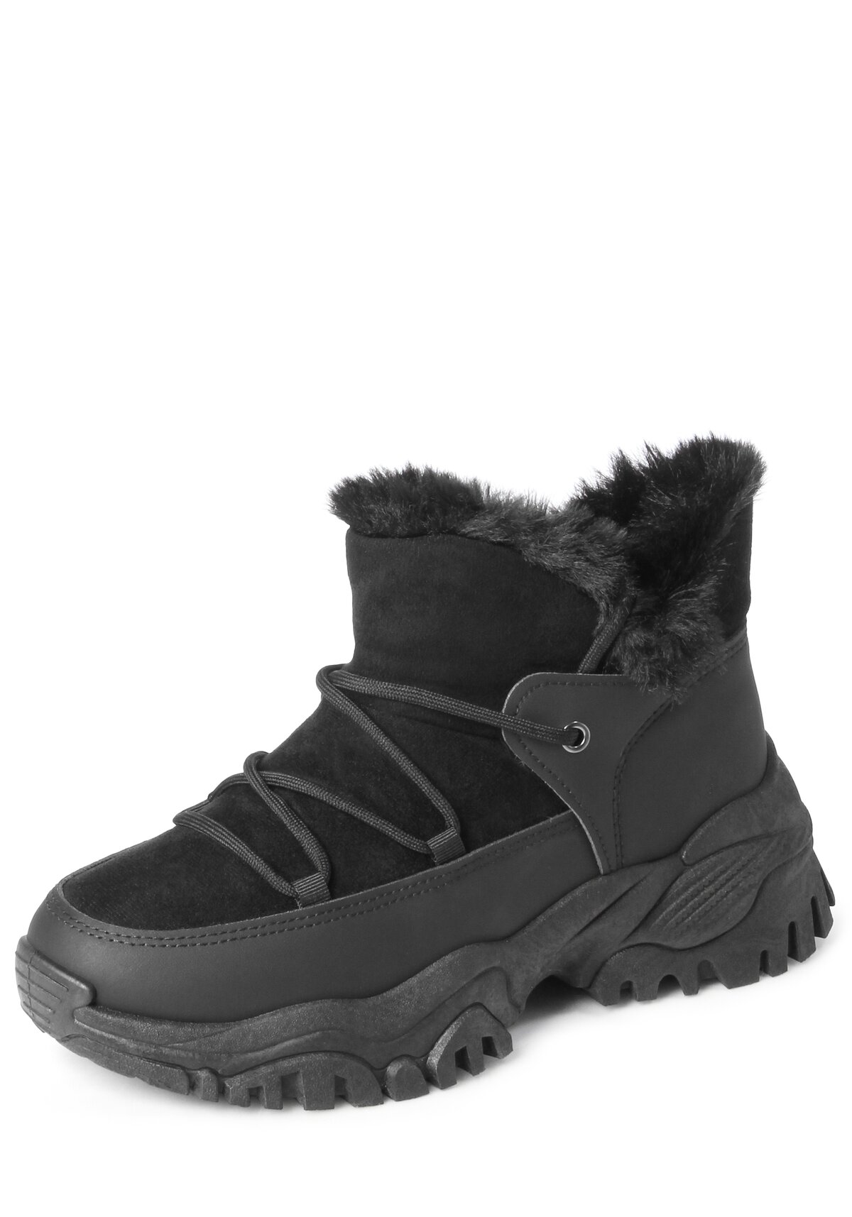 Ботинки выполнены из искусственной кожи — износостойкого и воздухопроницаемого материала. Натуральная шерсть внутри обуви прекрасно согревает и впитывает влагу. Модель представлена в двух цветах: черный и серый.