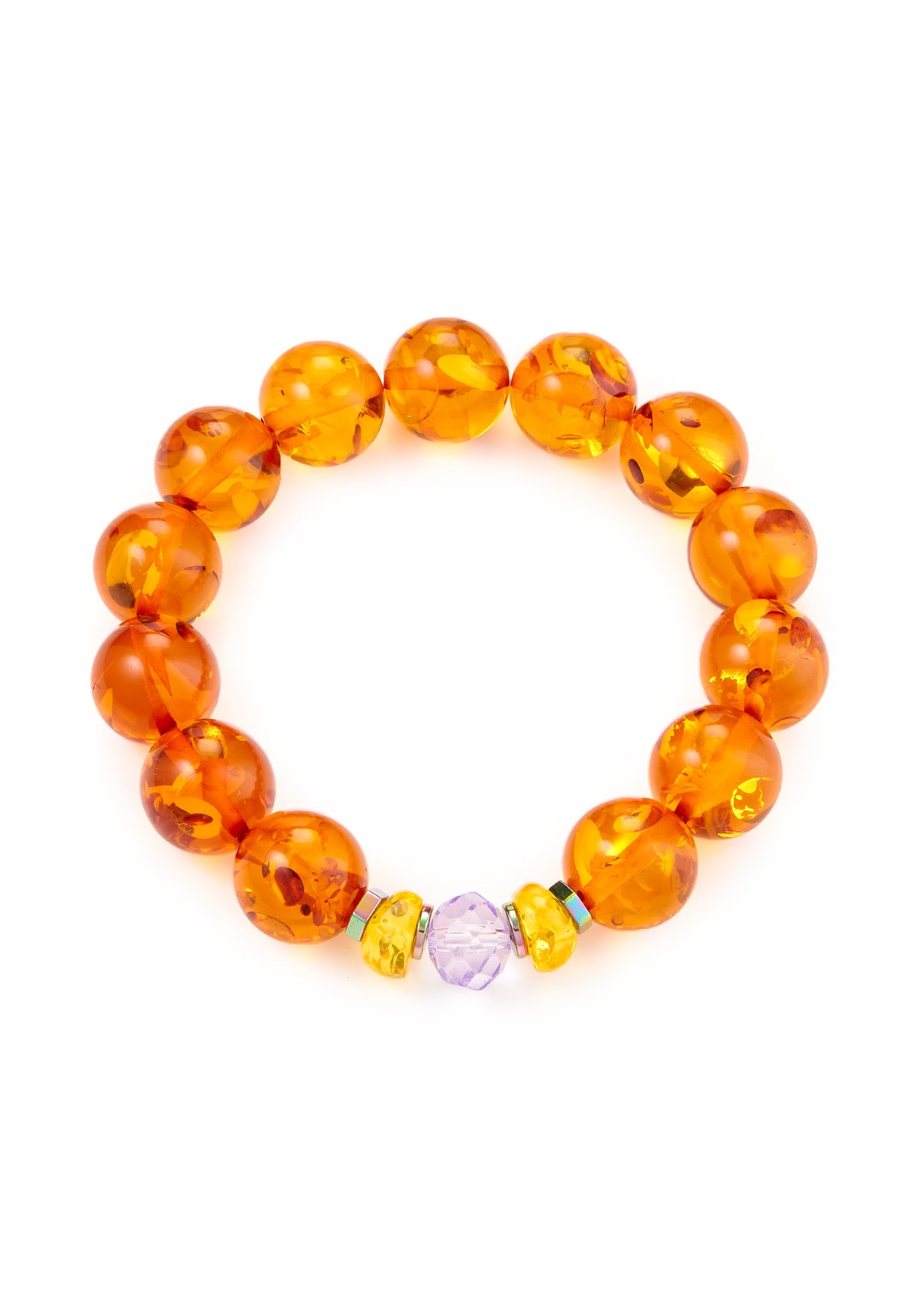 Бусины с изящными бусинами из гидротермального кварца и реконструированного янтаря. Резинка эластичная и прочная.