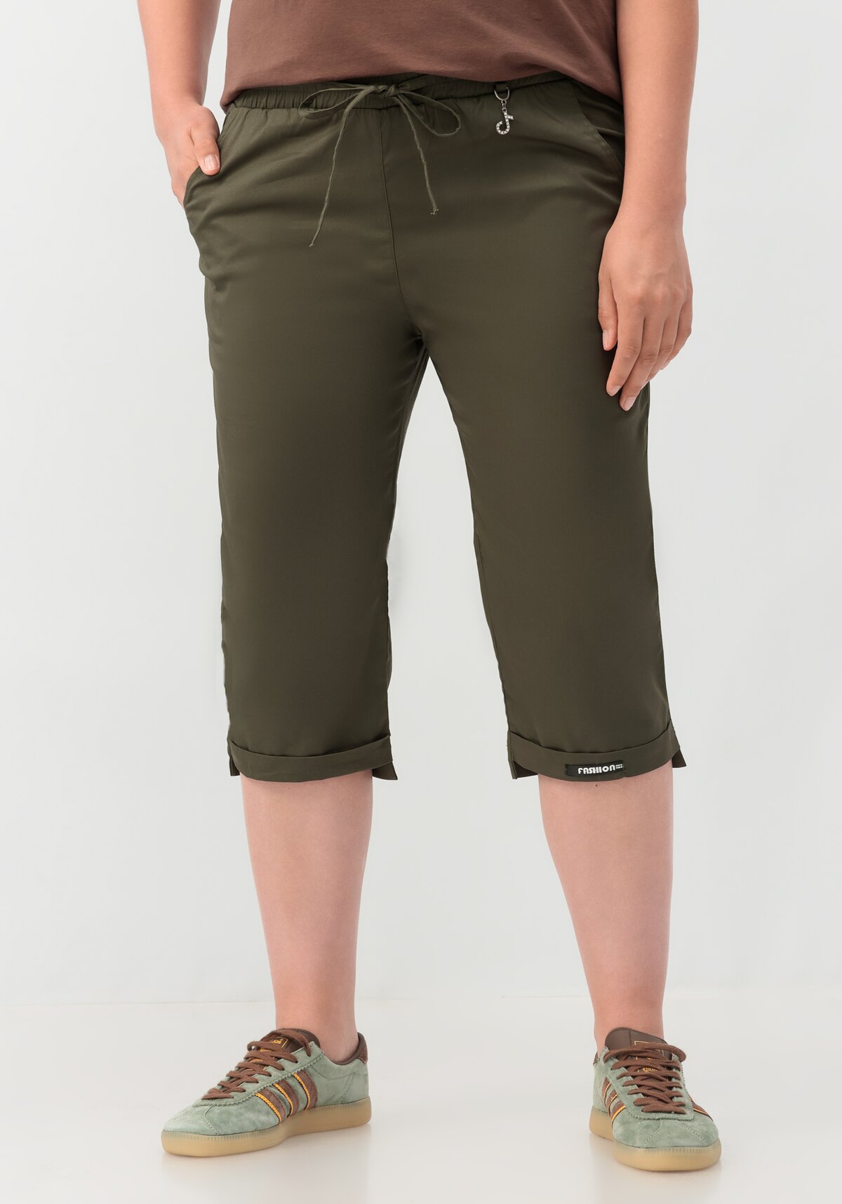 Бриджи средней посадки на резинке в талии выполнены в разных цветах. Тянутся благодаря эластану в составе. Отворот по низу брючин. Комфортные бриджи для повседневного использования.