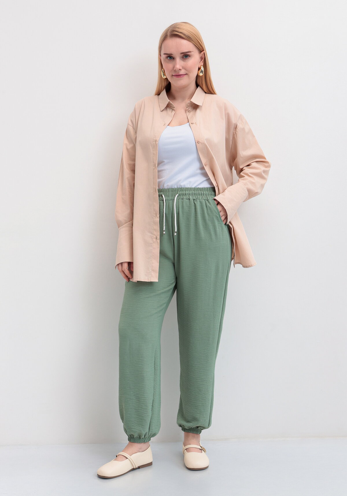 Брюки свободного кроя из хлопка и вискозы. Пояс на резинке обеспечивает идеальную посадку. Модель представлена в четырех цветах: голубой, черный, мятный, серый.