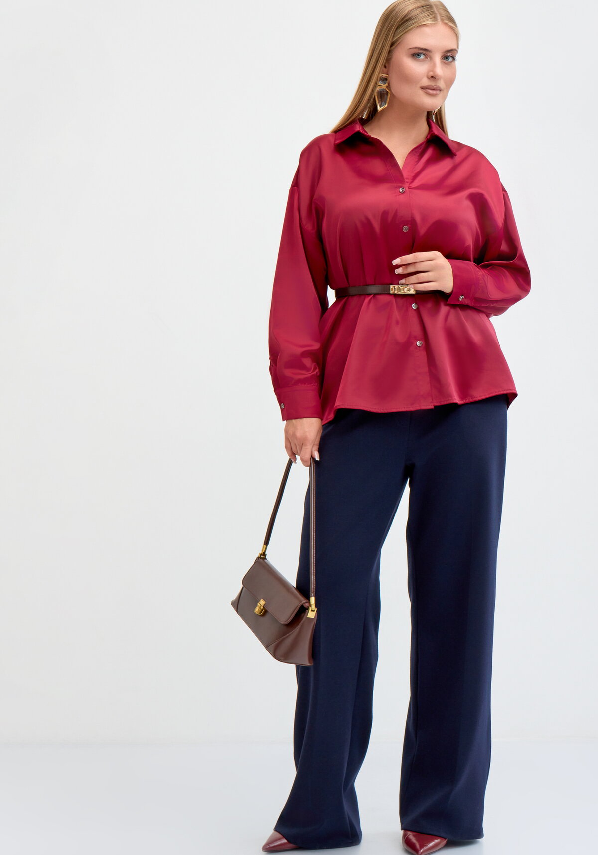 Брюки свободного кроя с высокой посадкой и эластичным поясом по спинке. Материал брюк мягкий, эластичный, дышащий, он не мнется и не деформируется. Практичные и комфортные брюки для повседневных образов, офиса и мероприятия.