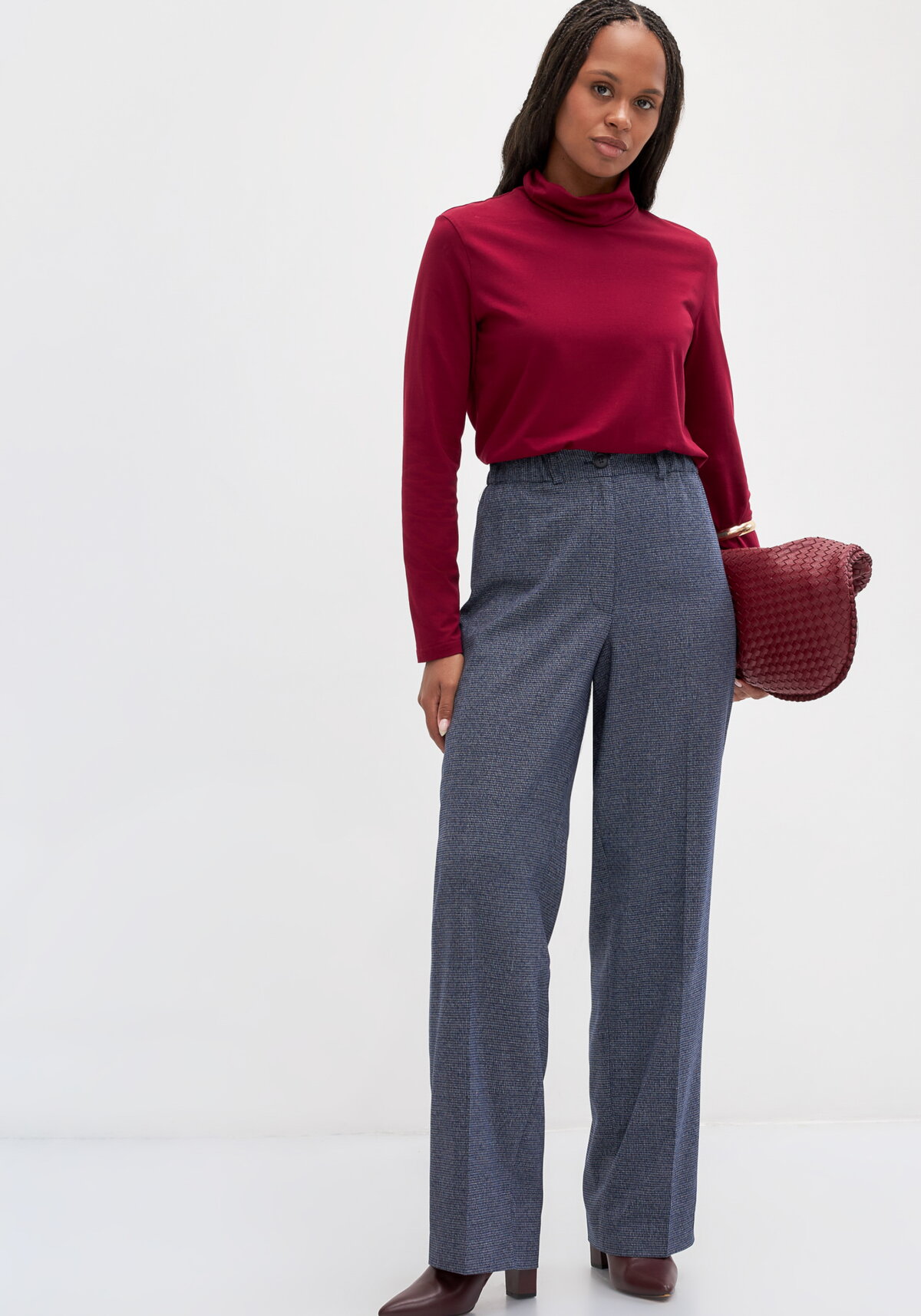 Брюки прямого кроя со стрелками из поливискозы. Высокая посадка. Удобная свободная модель не стесняет движений.