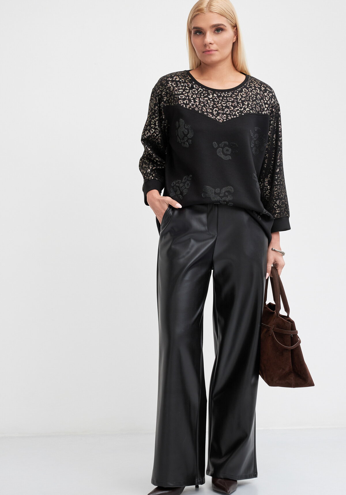 Брюки прямого свободного кроя обеспечивают комфорт и не сковывают движения. Хлопковый утеплитель внутри делает их теплыми и подходящими для прохладной погоды. Эластичная лента в поясе гарантирует удобную посадку, а функциональные передние карманы добавляют практичности. В комплект входит ремень, который позволяет регулировать объем, а имитация карманов сзади придает модели завершенный внешний вид.