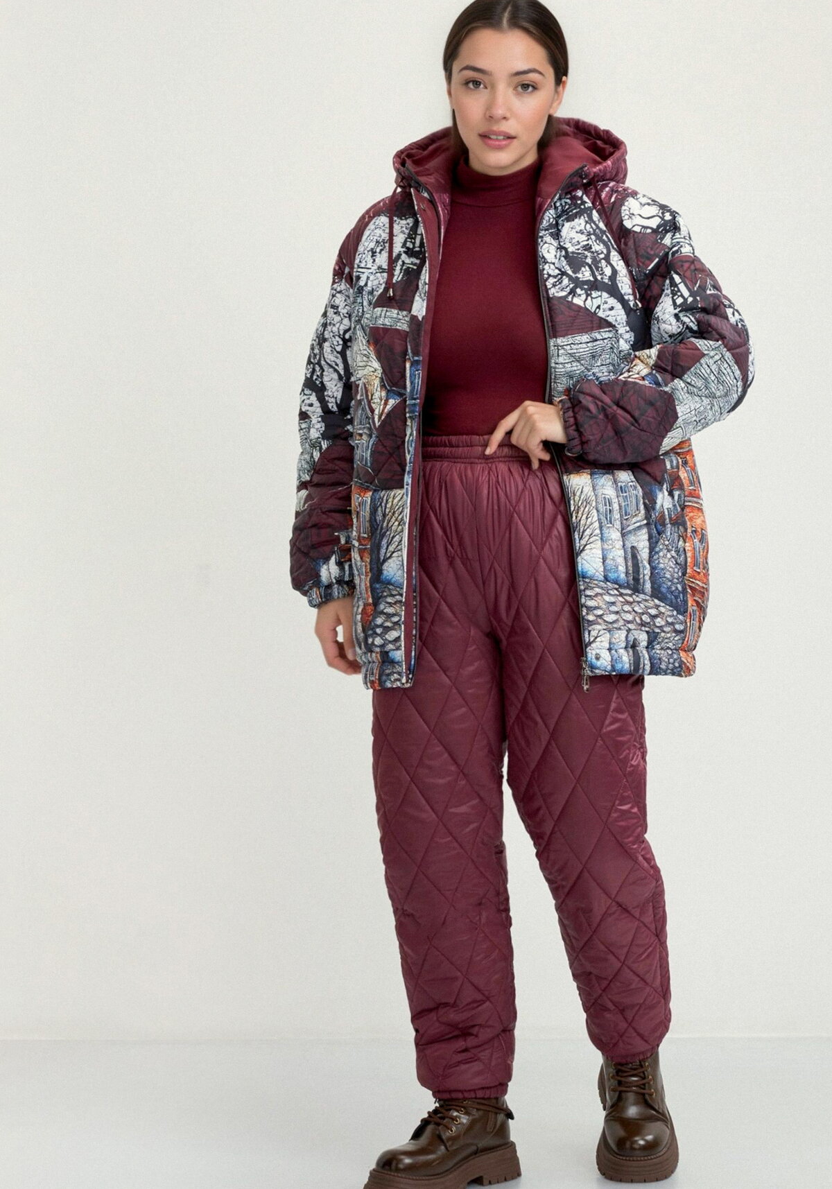 Прямые стеганые брюки с утеплителем – идеальное решение для зимних прогулок. Высокая посадка и эластичная лента в поясе создают комфорт в носке. Эластичная лента по низу брюк способствует сохранению тепла и защитит от попадания снега. Температура комфорта от 0 до -20 градусов.