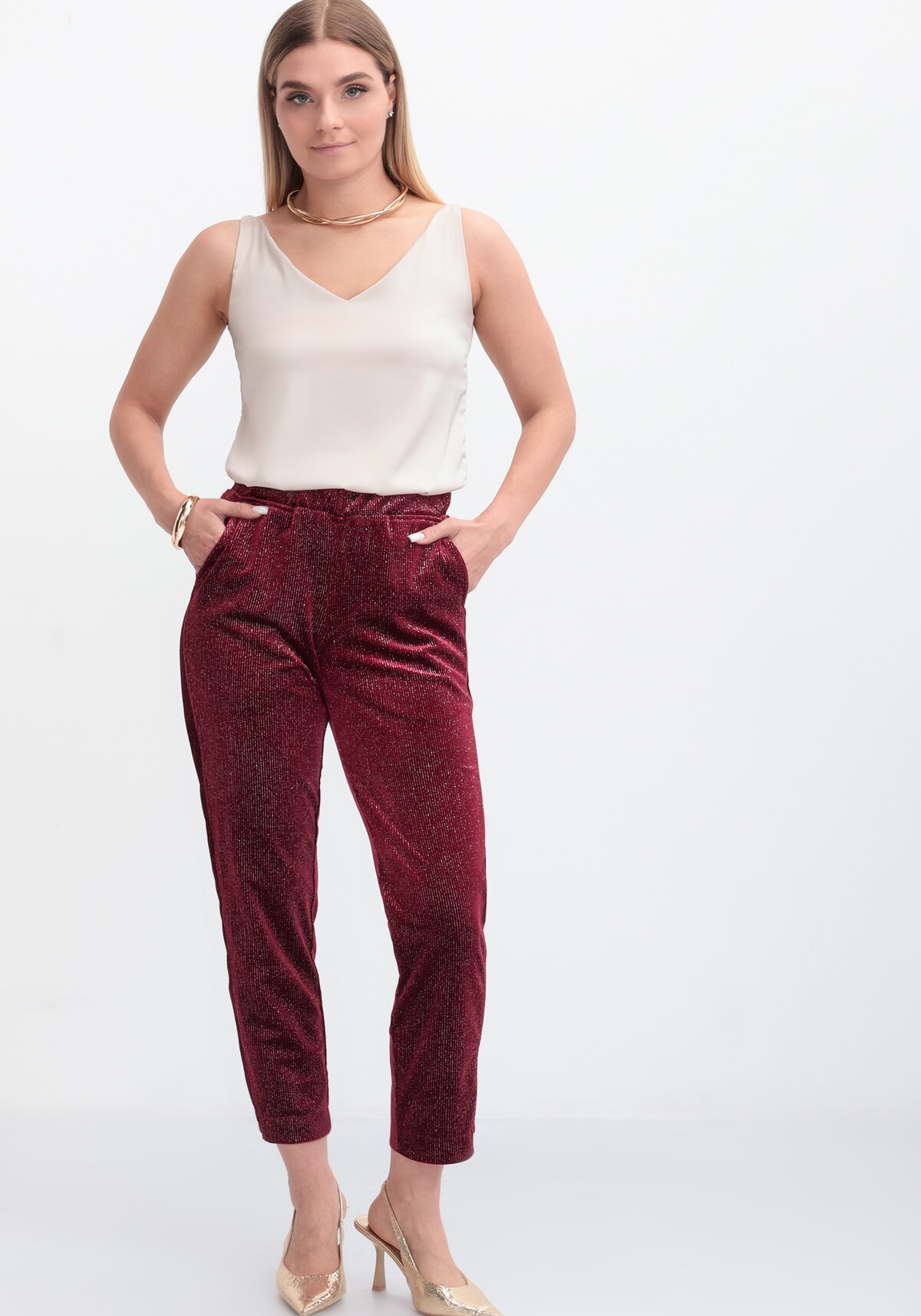 Комфортные брюки свободного кроя — практичная модель для создания расслабленных образов. Изящные защипы на передней части, выполненные из отрезной кокетки, придают изделию элегантность и утонченность. Функциональные внутренние карманы обеспечивают дополнительное удобство, а практичная длина 7/8 делает модель универсальной для любого сезона. Широкая эластичная резинка на талии гарантирует идеальную посадку и комфорт при носке, позволяя чувствовать себя уверенно в течение всего дня.