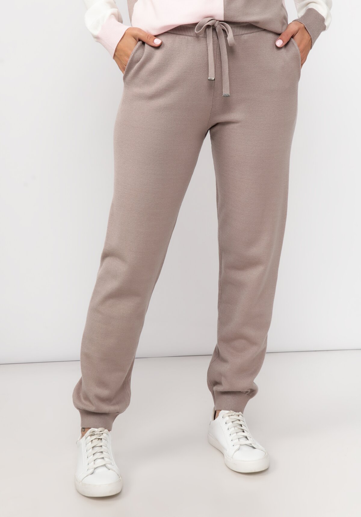 Уютные вязаные брюки-джоггеры с комфортной высокой посадкой и эластичным поясом на кулиске. Функциональные карманы. Базовые расцветки. Практичные и теплые брюки хорошо сочетаются с верхом разного фасона и обязательно займут почетное место в вашем демисезонном гардеробе.