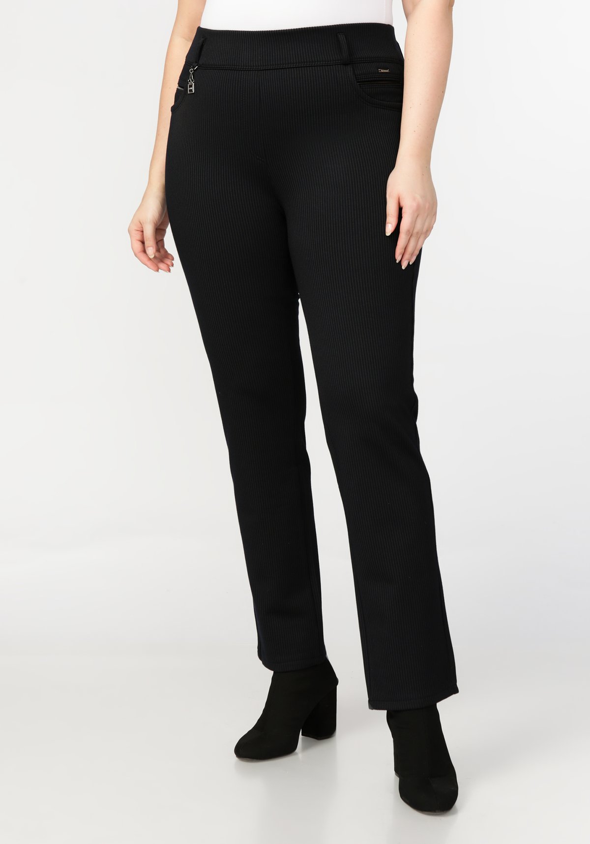 Фактурные брюки прямого кроя с металлическим декором. Классическая модель, с которой можно создать как деловой, так и повседневный образ. Приятный к телу натуральный хлопок. Функциональные карманы.