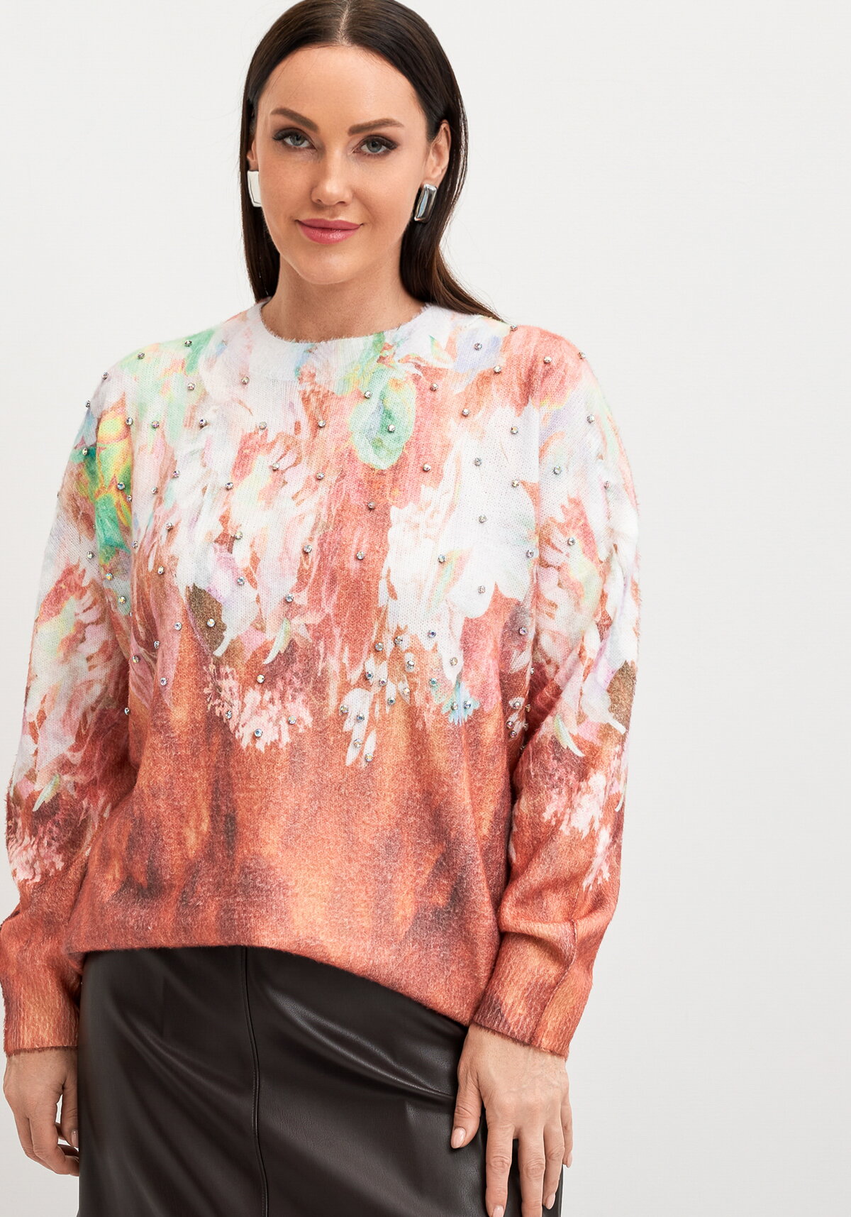 Джемпер свободного кроя, из мягкого трикотажа с добавлением шерсти. Украшен стразами.