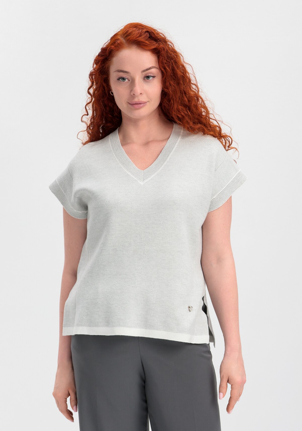 Джемпер с люреском и укороченными рукавами - необходимая вещь в гардеробе каждой женщины. Универсальный и практичный джемпер с изящной вязкой на каждый день.