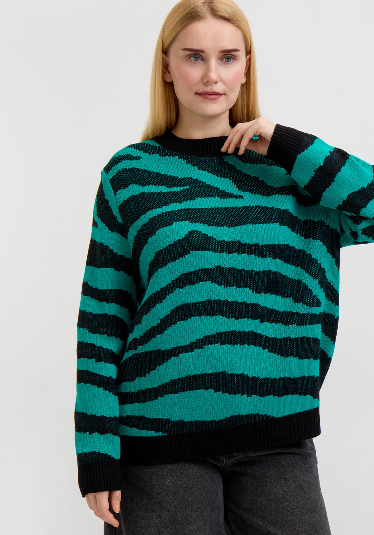 Вязаный джемпер полуприлегающего силуэта с втачными рукавами. Модель представлена в двух цветах: бирюзовый и персиковый.