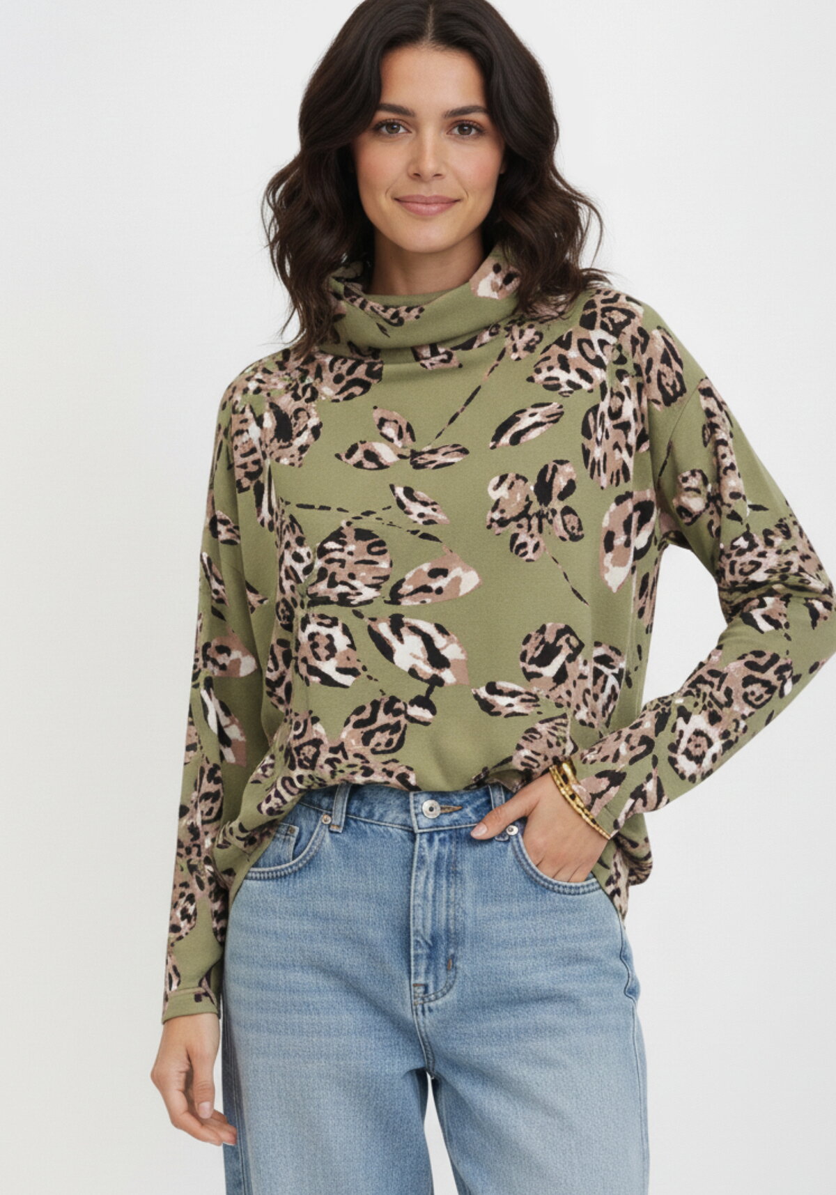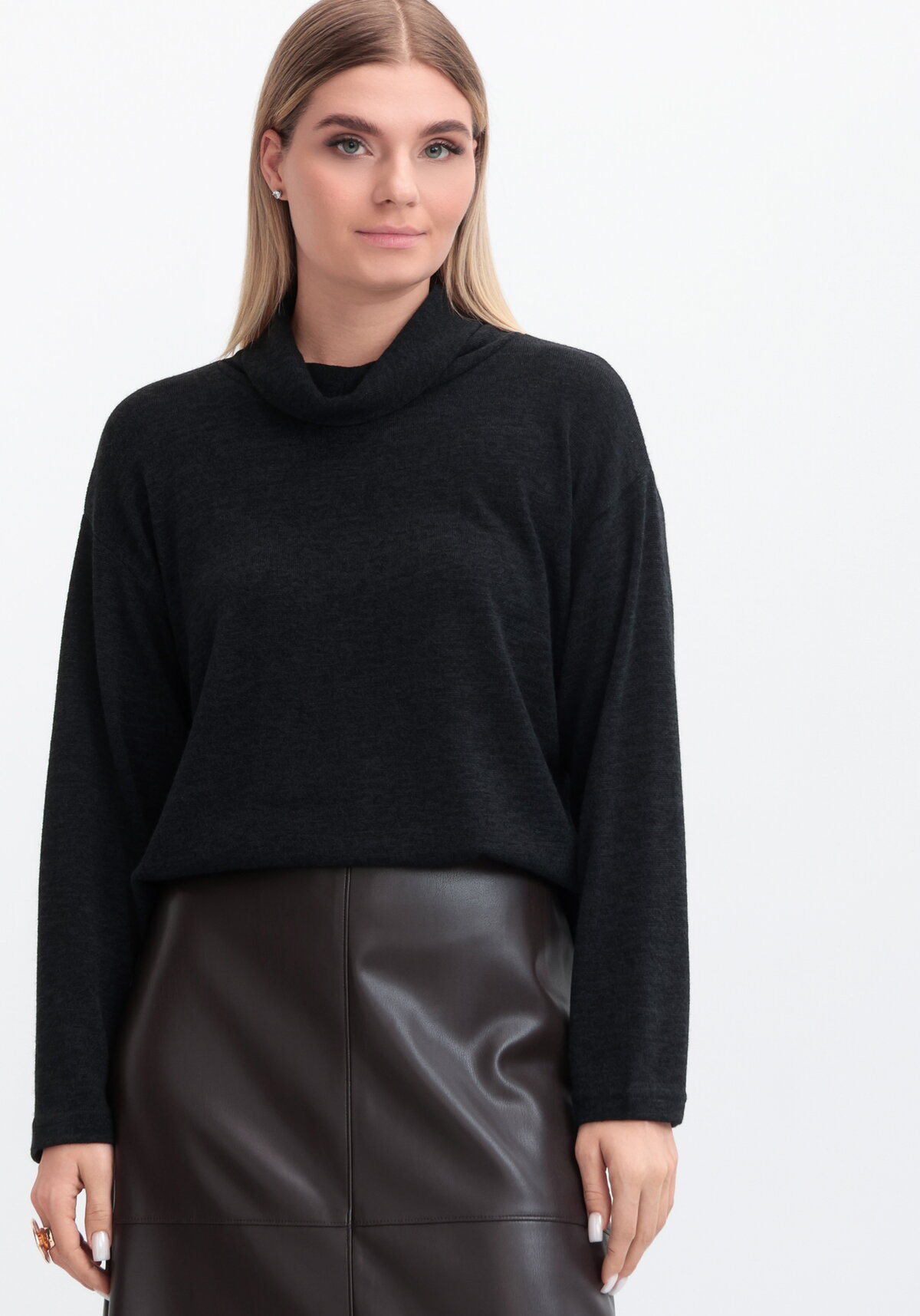 Уютный джемпер свободного силуэта покорит вас своим комфортным дизайном. Модель украшена стильным воротом-хомутом, который обеспечивает дополнительное тепло и комфорт, а фигурный низ придает изделию особый шарм и элегантность.
