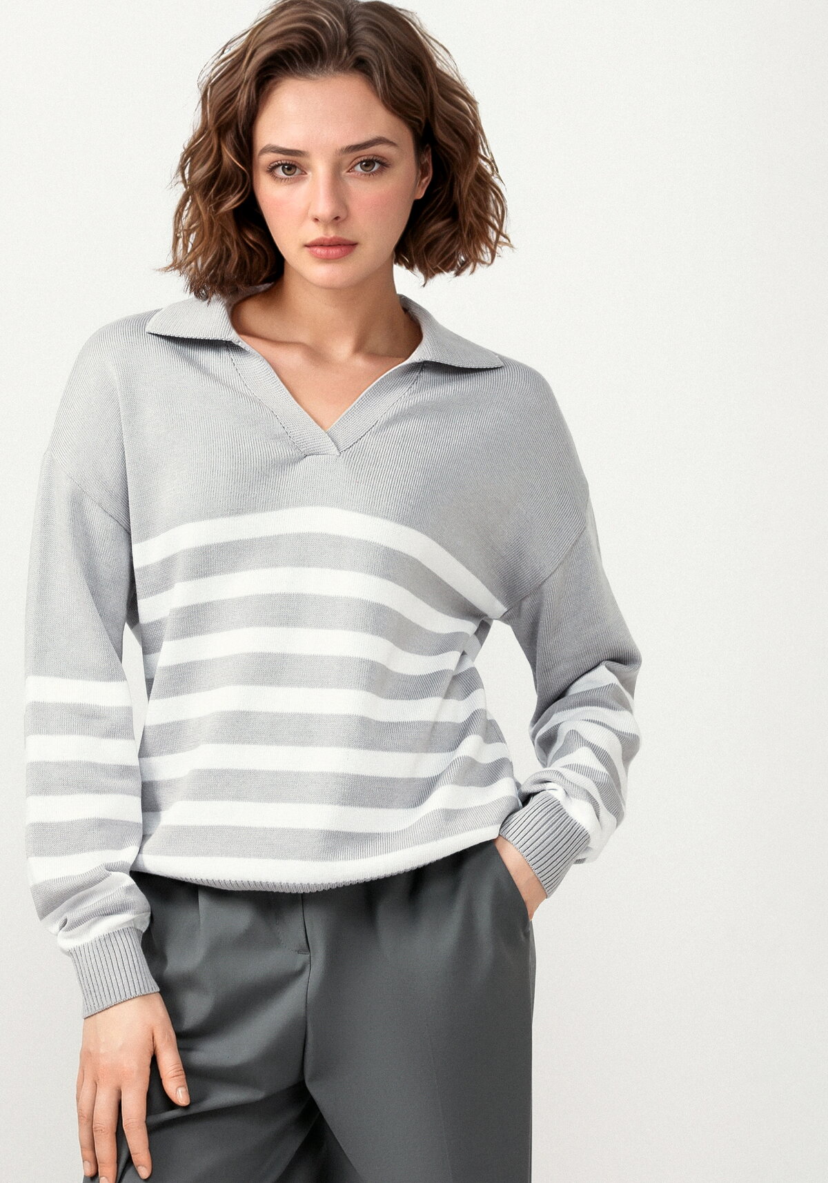 Стильный джемпер выполнен из натурального хлопка с пан-волокном, благодаря чему изделие приятно к телу и долговечно. Спущенная пройма обеспечивает дополнительную свободу в области деликатной зоны рук. Отложной воротник-поло без застежки дарит комфорт и свободу. Джемпер выполнен из стабилизированной пряжи, вследствие чего не линяет, не выгорает на солнце и прекрасно держит форму после многократных стирок.