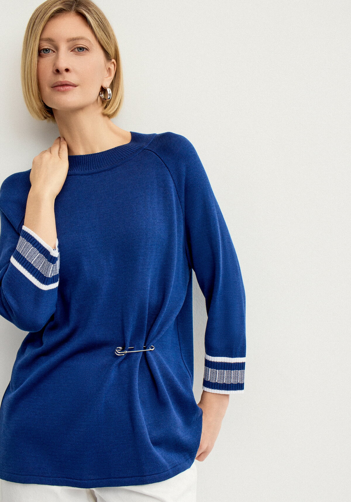 Комфортный базовый джемпер прямого кроя с контрастными полосами на рукавах. Отличный вариант как для делового, так и для повседневного образа. Мягкий и приятный к телу — вискоза в составе. Прямой силуэт с припуском на свободу движения.