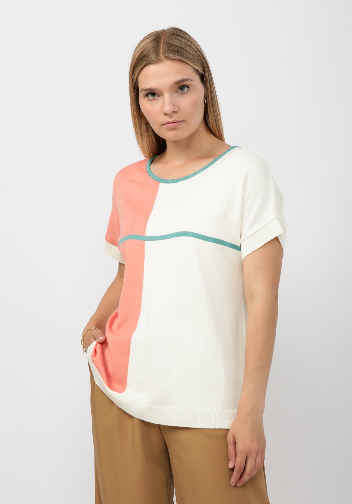 Комфортный вискозный джемпер в стиле «колор-блок». Подходит для любого типа фигуры и гармонично вписывается в разные образы. Мягкий и приятный к телу — его просто не захочется снимать. Актуальные расцветки.