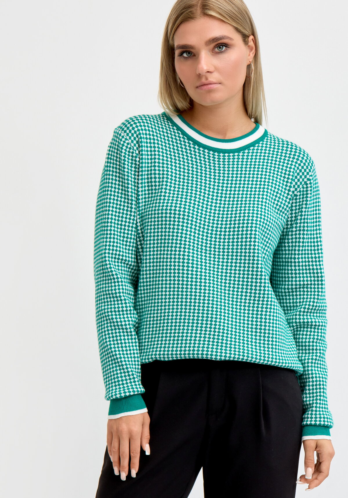 Джемпер с круглым вырезом горловины и длинным рукавом. Модель представлена в четырех цветах: розовый, бежевый, серый, мятный.