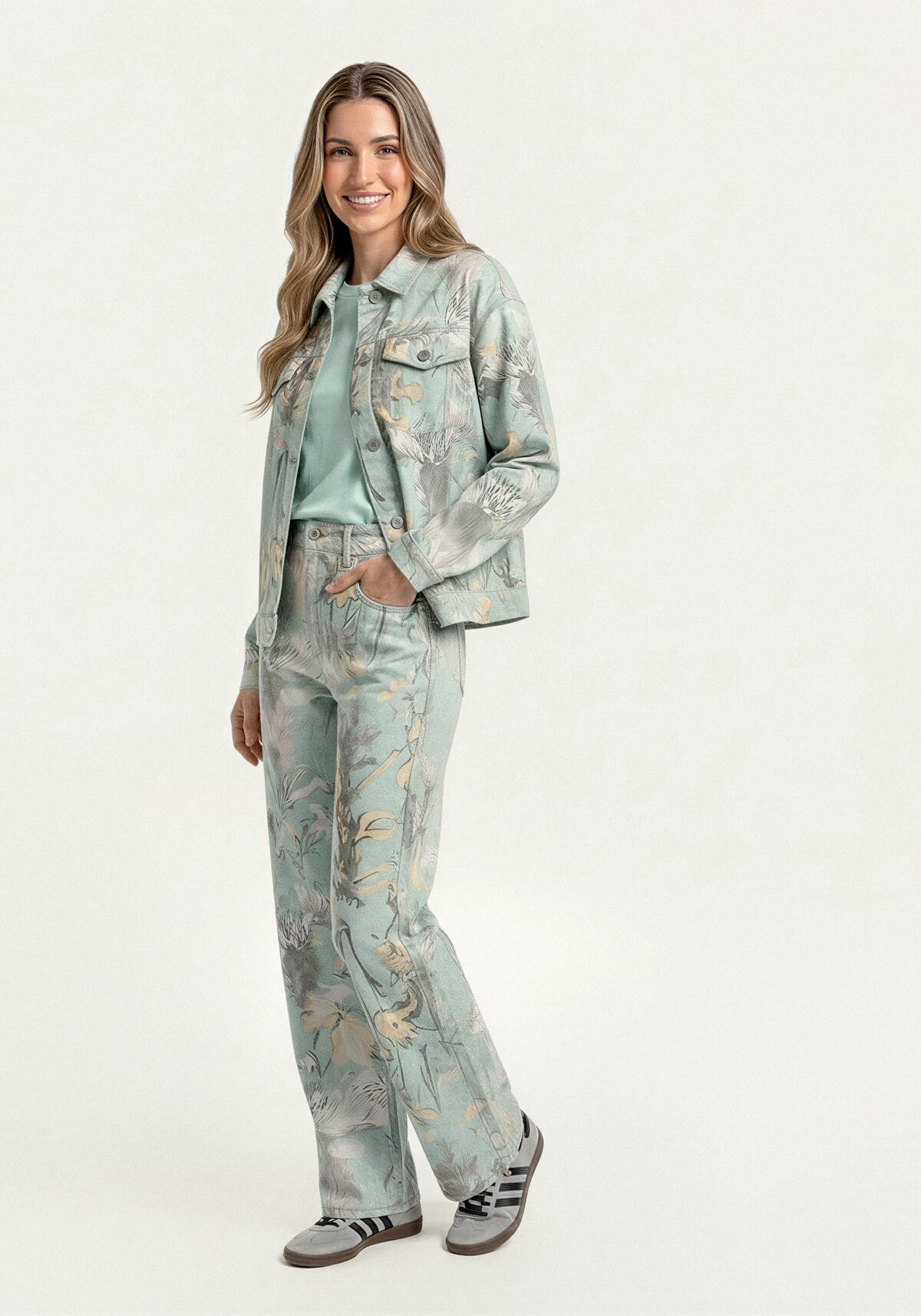 Стильные джинсы прямого кроя с изящным цветочным рисунком подарят вам неповторимый образ — утончённый принт деликатно преображает классическую модель, делая её по‑настоящему особенной. Идеальная посадка обеспечивается продуманным кроем: эластичная резинка по задней стороне спинки мягко корректирует линию талии, гарантируя комфорт и удобство в течение всего дня. Практичные детали — рабочий гульфик, вместительные боковые и задние карманы, шлёвки на поясе — гармонично дополняют дизайн, подчёркивая функциональность и безупречный стиль этой модели.