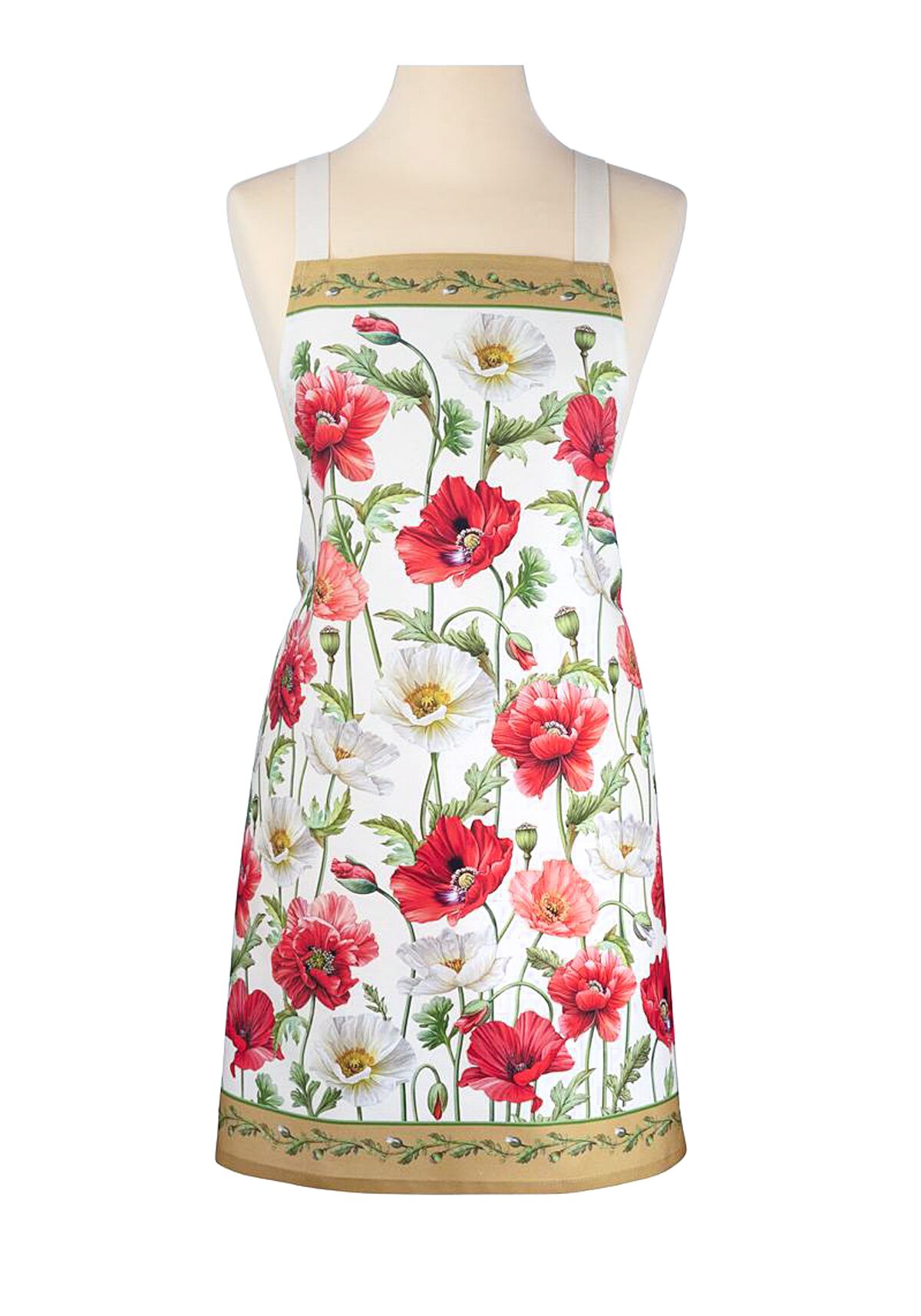 Цветная печать на фартуке в виде ярких маков создает на кухне уютную атмосферу. Столовое белье изготовлено по эксклюзивным дизайнам, воплощённым в цифровой печати на современном оборудовании. Для пошива изделий используются только натуральные материалы. Цифровая печать позволяет перенести на изделия не только всё богатство красок и оттенков, но и придать особую прочность крашению, ткань не теряет своей яркости даже после 100 стирок. Изделия легки и неприхотливы в уходе, стирать нужно при температуре до 40 градусов, гладить при температуре 110-170 градусов с отпариванием, нельзя подвергать хлорному отбеливанию.