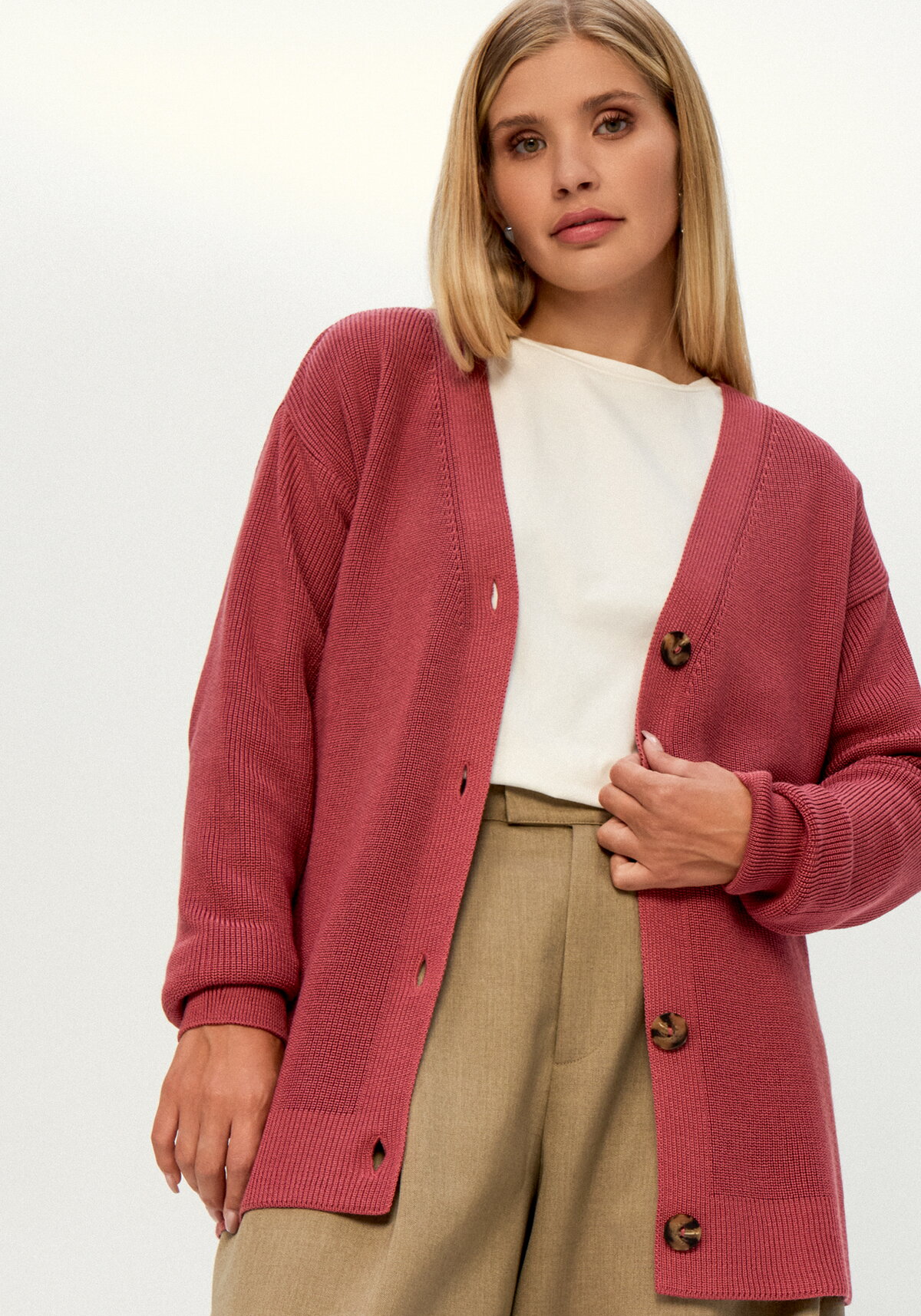 3. Застежка на пуговицы а-ля натюрель позволяет носить кардиган как застегнутым, так и нараспашку