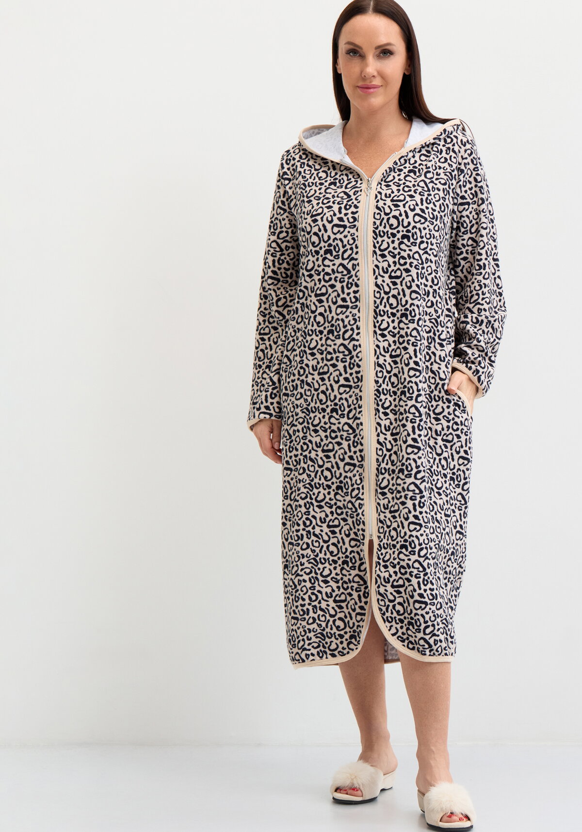 Уютный и стильный халат для дома, который сочетает комфорт и практичность. Изделие выполнено из мягкой, приятной к телу ткани и дополнено удобной застёжкой-молнией и капюшоном для максимального комфорта.