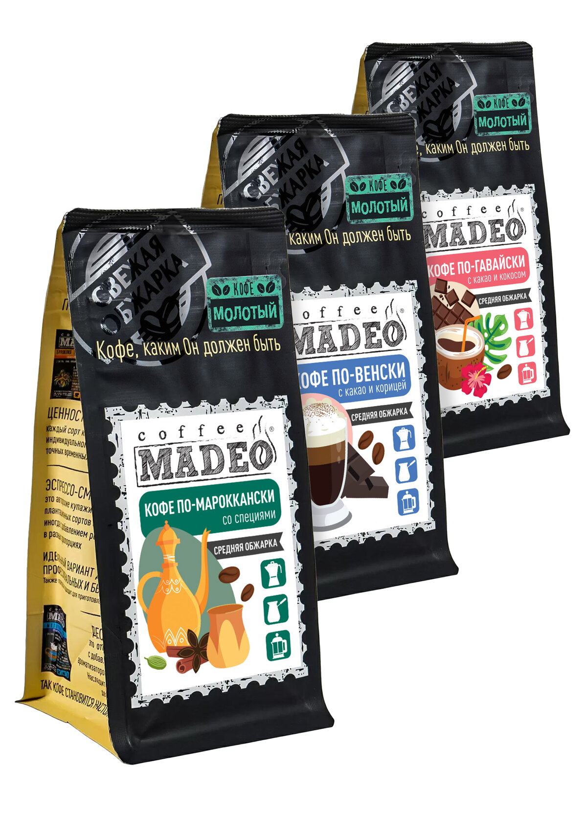 Компания MADEO – российский производитель кофе, шоколада и растворимых напитков. Собственное производство находится в Москве, оснащено современным оборудованием и стабильно работает с 2005 года. В ассортименте более 150 уникальных сортов молотого и зернового кофе со всего мира, десертные сорта, кофе с добавлением натуральных специй и функциональных ингредиентов. У проверенных трейдеров закупается качественный зелёный кофе. Обжарка производится на специальном оборудовании -итальянских электрических ростерах, которые позволяют контролировать процесс обжарки с высокой точностью. Современная система сортировки и очистки сырья позволяет гарантировать отсутствие дефектов в готовом продукте.