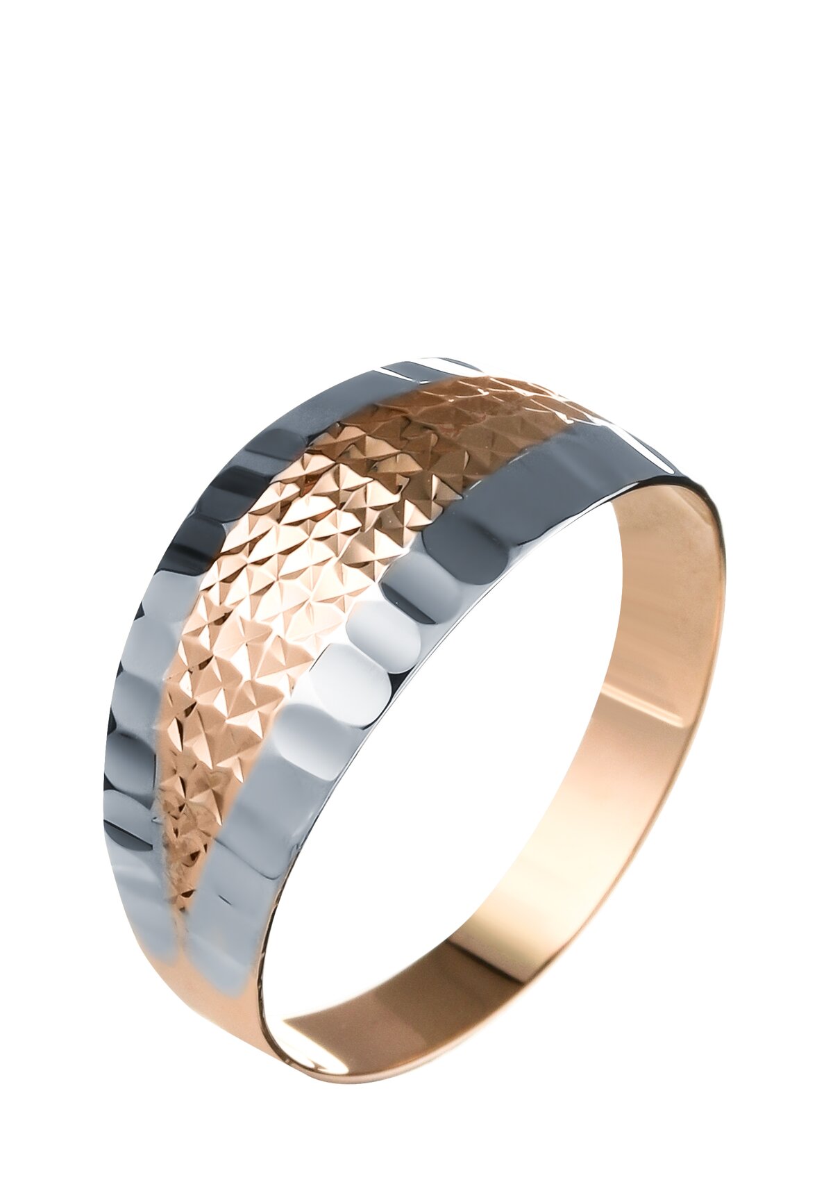 Стильное кольцо из золота 585 пробы. Изделие представлено в двух вариантах: золотой и комбинированный.