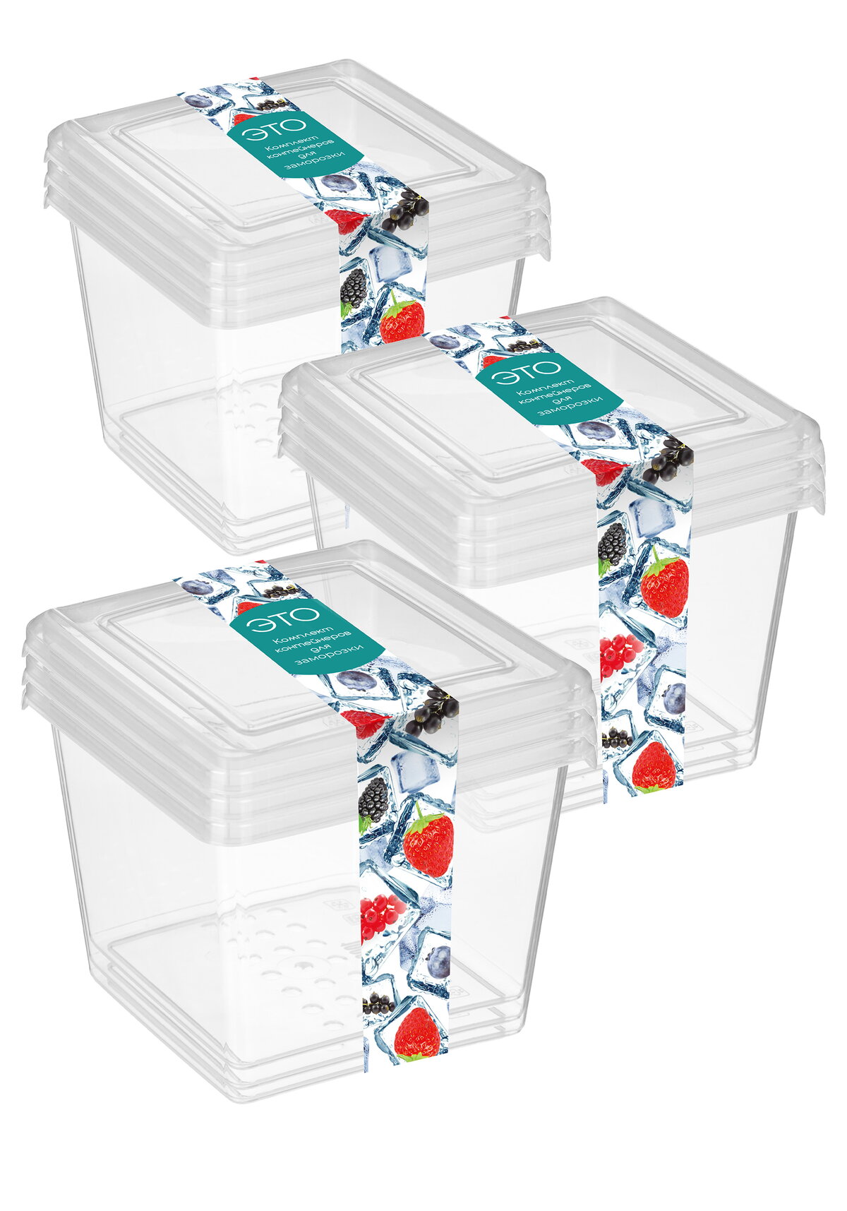 Комплект контейнеров для заморозки отлично подходит для повседневного хранения продуктов в холоде, особенно в сезон заготовок. Крышка плотно прилегает к контейнеру, исключая проникновение посторонних запахов. Контейнеры надежно устанавливаются друг на друга, экономя место в морозильной камере. Подходят для порционной заморозки (при неполном заполнении ёмкости). Внутри комплекта находятся специальные стикеры, на которых можно подписать, что заморожено внутри. Изготавливается из перерабатываемого безопасного пищевого полипропилена, не содержит бисфенола А.