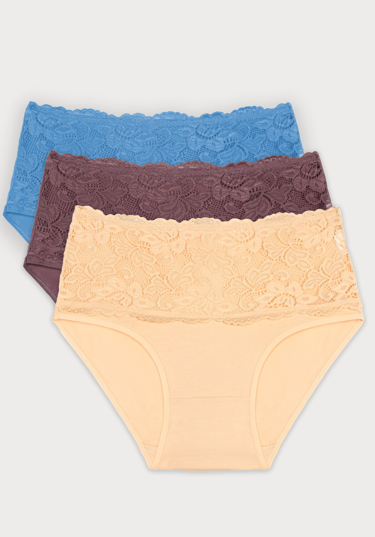 Комплект из трех эластичных трусов с высокой посадкой сочетает в себе комфорт, эстетику и практичность: высокая посадка обеспечивает надежную поддержку и удобство в течение всего дня, а изящная кружевная вставка спереди придаёт модели изысканный вид. Мягкие и приятные к телу материалы гарантируют комфорт при носке — бельё практически не ощущается на коже и остаётся незаметным под одеждой. Дышащая ткань обеспечивает свежесть, а эластичная посадка мягко корректирует силуэт, подчёркивая достоинства фигуры. Качественные, прочные материалы сохраняют форму и цвет даже после множества стирок, обеспечивая долгий срок службы комплекта.