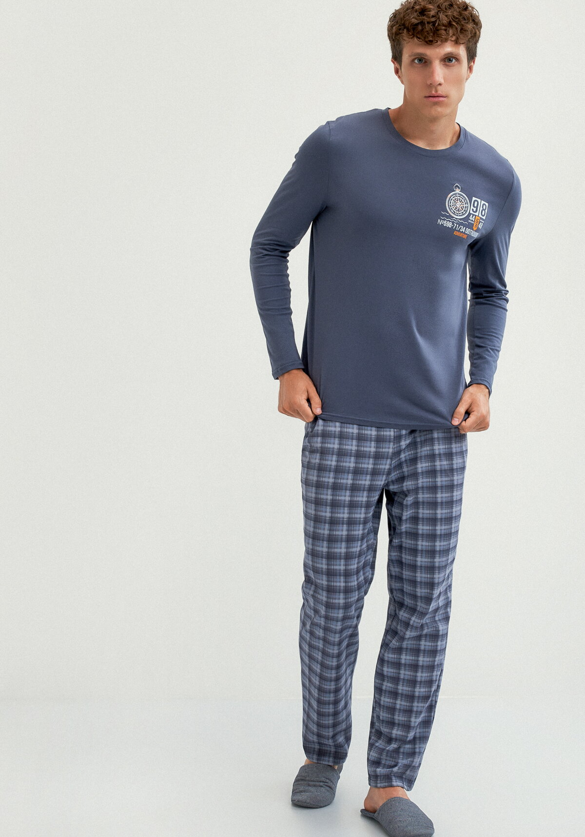 Костюм для повседневной и домашней носки. Лонгслив прямого кроя с длинными рукавами и принтом на полочке. Прямые брюки с карманами в боковых швах.