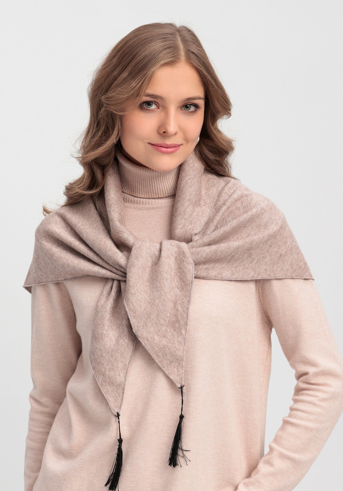 Вязаная косынка с ангорой очень мягкая и приятная к телу, не колется, отлично сохраняет тепло и отводит влагу. Материал не вызывает аллергии.