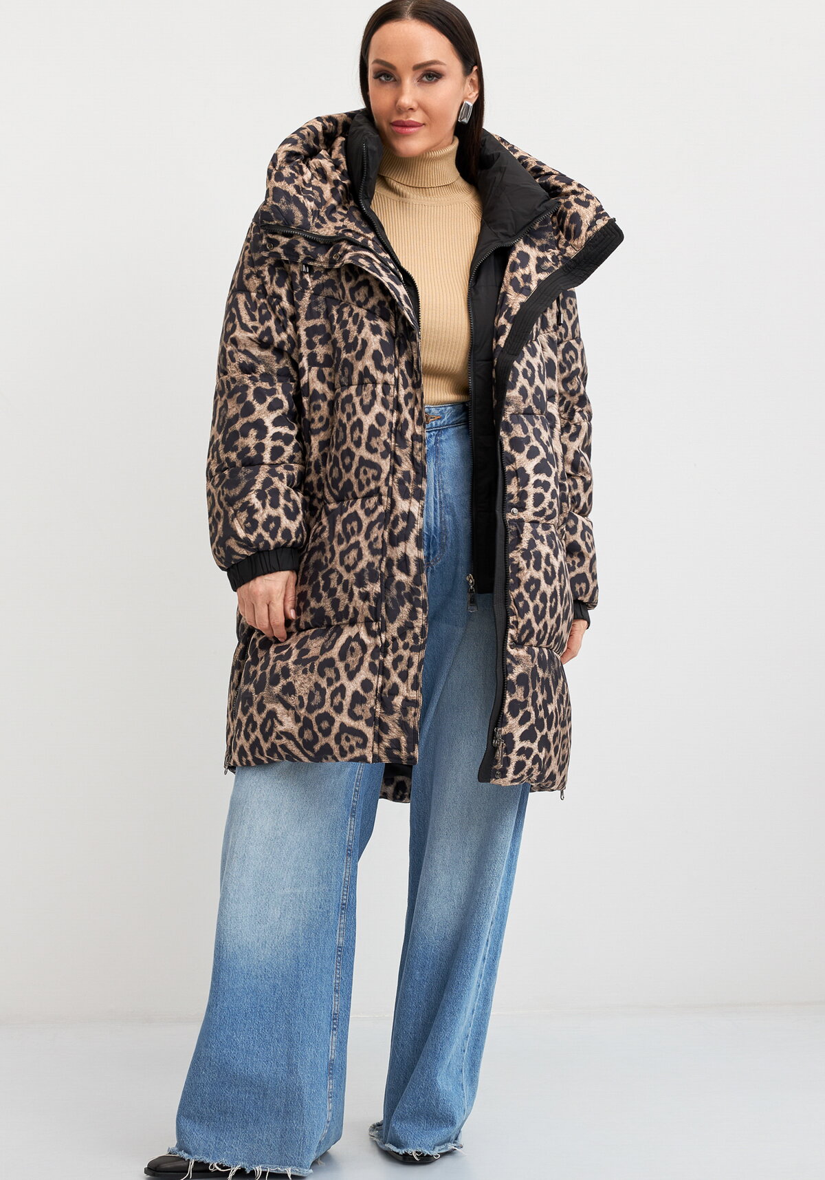 Куртка с капюшоном и манишкой. Стильный леопардовый принт. Модель с прорезными карманами и застежкой-молнией. Температура комфорта от 0 до -20.