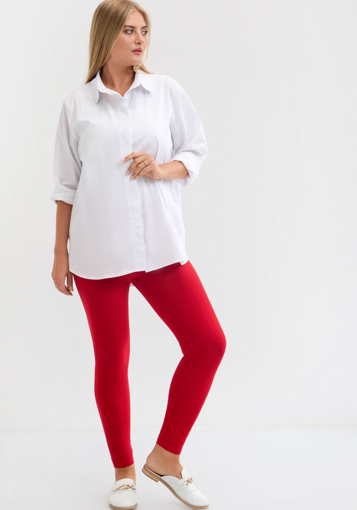 Леггинсы из трикотажного полотна. Плотно облегают фигуру, без боковых швов. Пояс цельнокроеный с эластичной лентой. Модель представлена в трех цветах: черный, красный, белый.