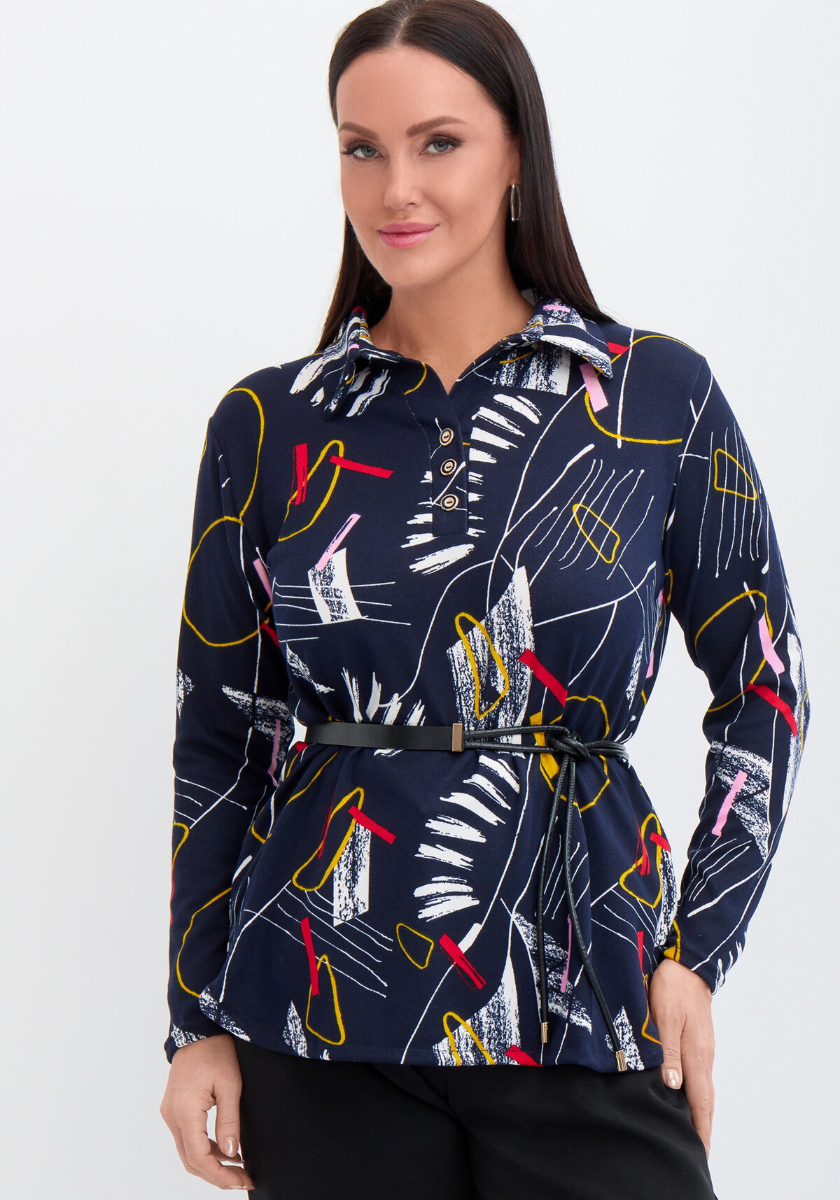 Трикотажный лонгслив-поло с изящным V-образным воротником. Застежка-обманка на груди и длинные рукава создают утонченный силуэт.