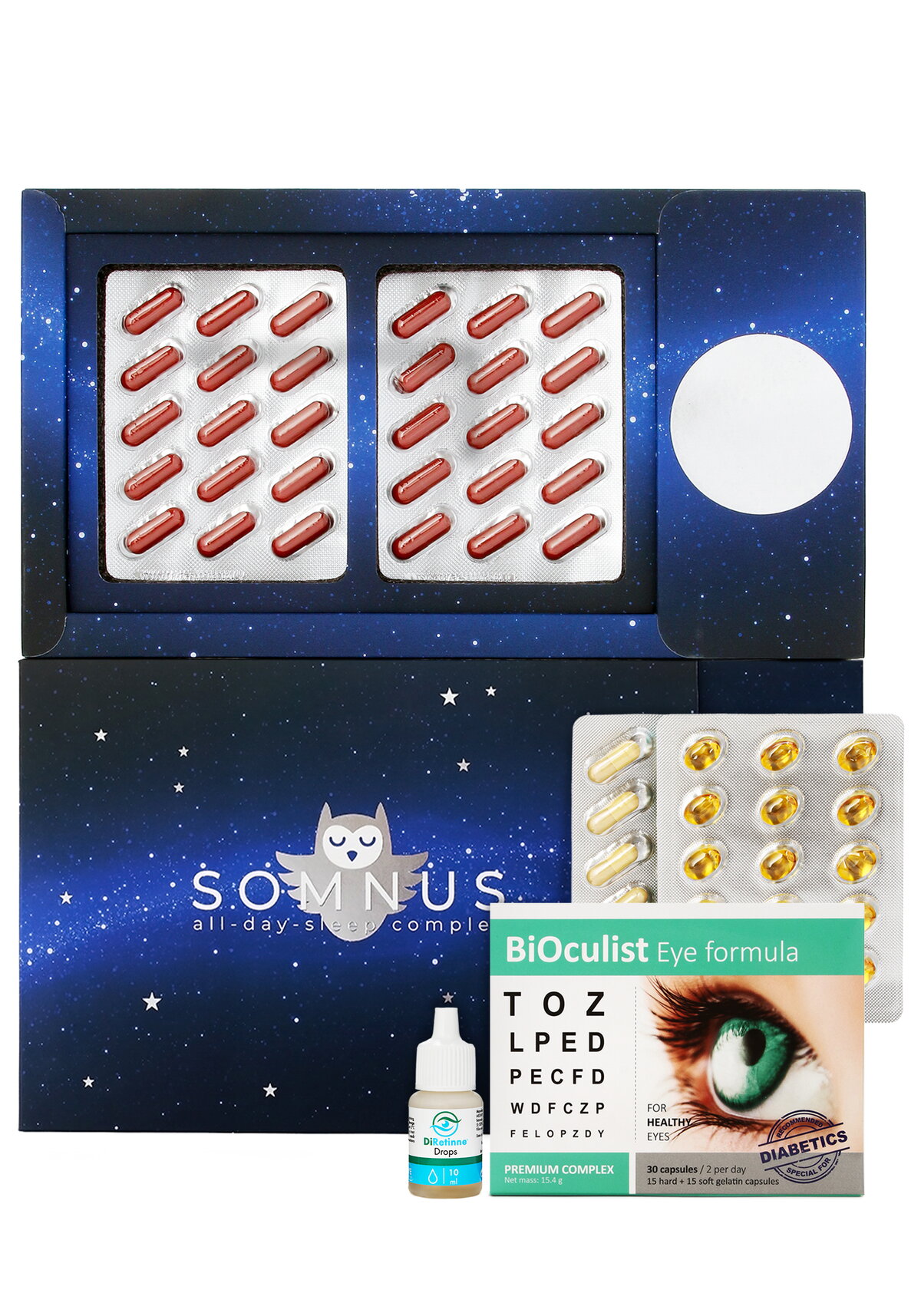 Набор «Биокулист + Сомнус» — это инновационное решение для комплексного ухода за зрением и нервной системой. Включает три продукта:
