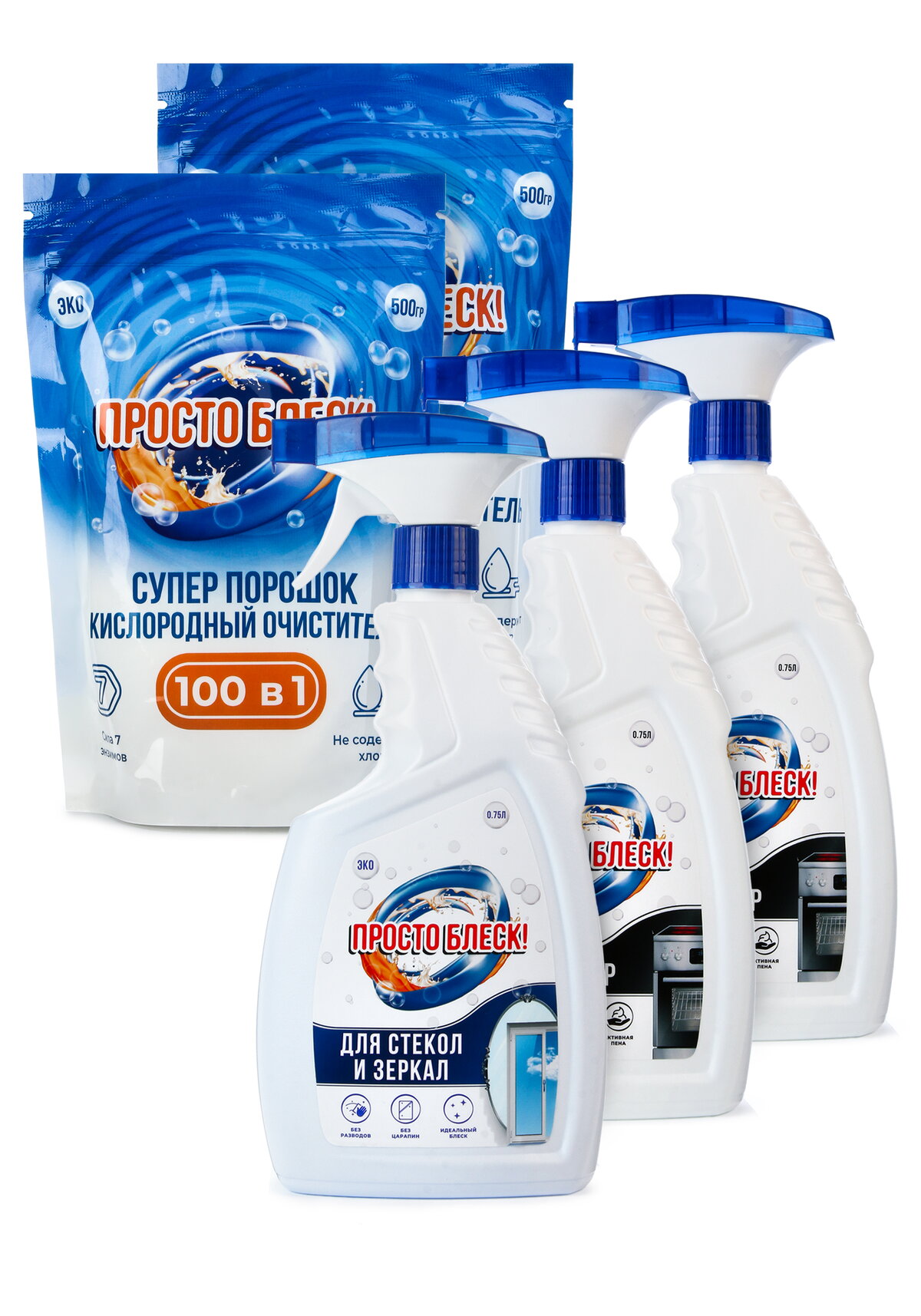 3) Спрей для чистки стекол "Просто блеск" (1 шт.)