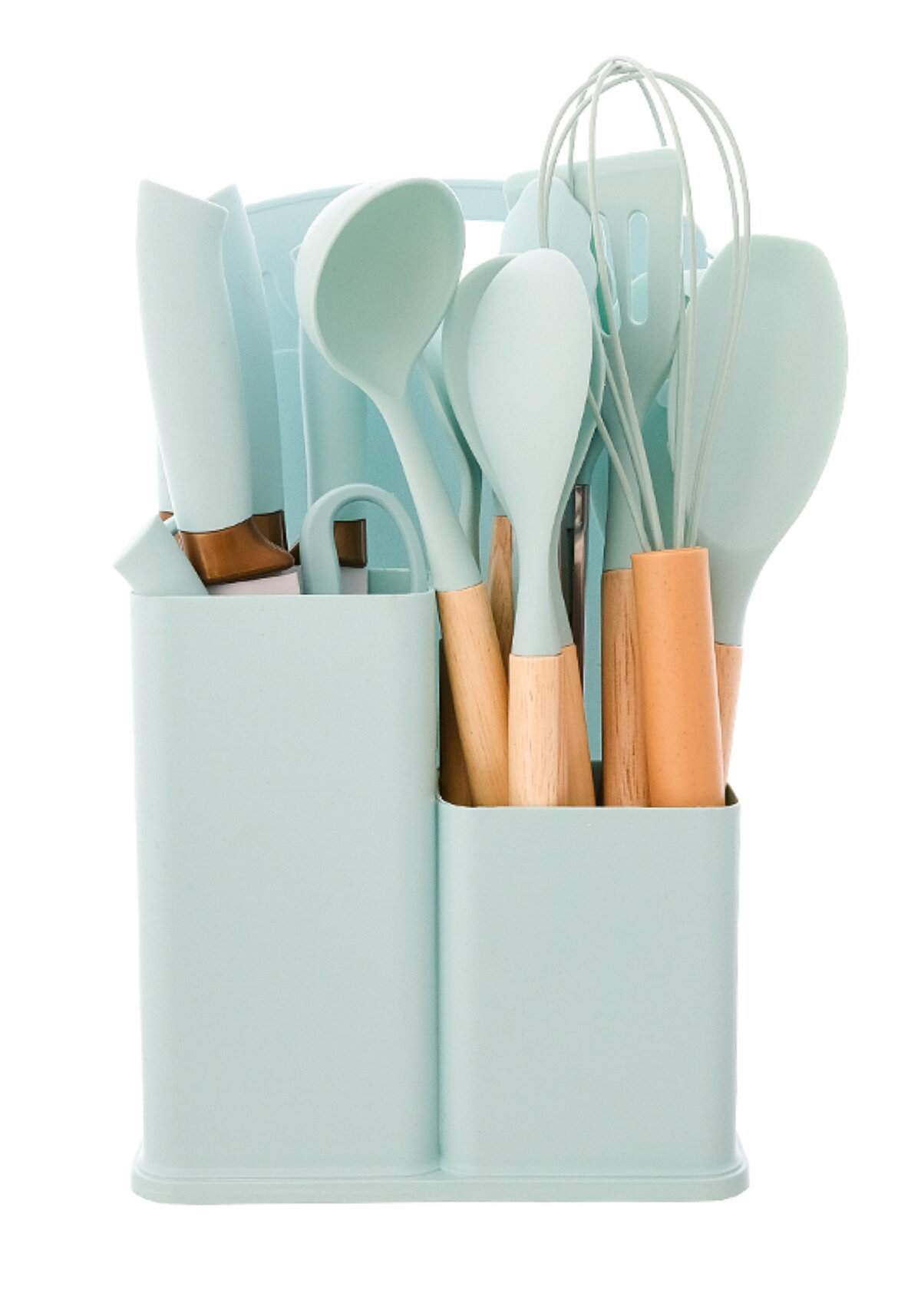 Набор кухонных принадлежностей — это незаменимый аксессуар на любой кухне, состоящий из 19 предметов. В него входят 5 профессиональных ножей из нержавеющей стали, 12 кухонных инструментов, разделочная доска и пластиковая подставка-органайзер. Все принадлежности изготавливаются из экологически безопасных материалов, включая пищевой силикон, который не царапает поверхность посуды и легко моется. Силиконовые предметы выдерживают температуру до +230 °С, имеют антипригарное покрытие и долговечны. Острые ножи и многофункциональные инструменты, такие как ножницы, помогут в приготовлении разнообразных блюд.