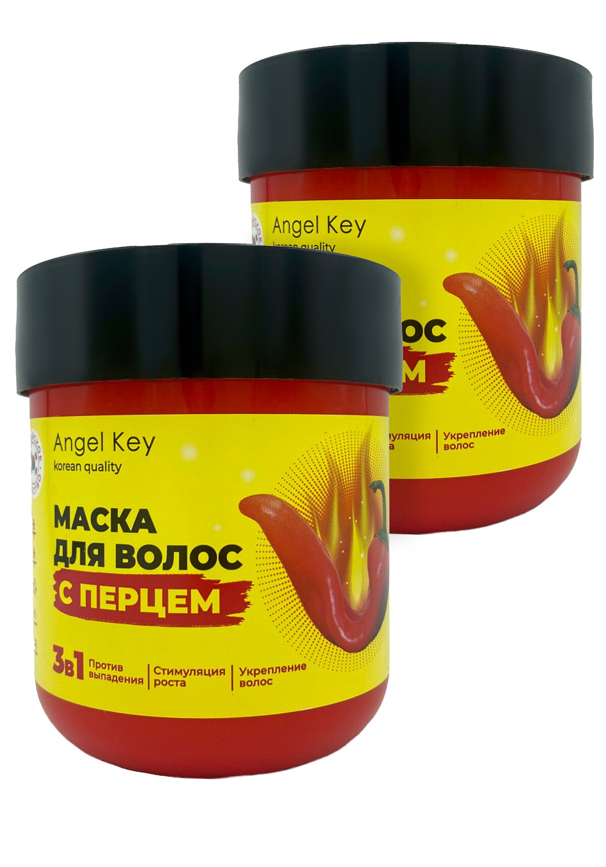 Набор «Укрепляющих масок для волос с перцем» от бренда Angel Key — это интенсивный уход для ослабленных, тонких или склонных к выпадению волос. Маска сочетает мощное стимулирующее действие перца с глубоким восстановлением благодаря комплексу натуральных масел и ухаживающих компонентов. Капсаицин активизирует кровообращение кожи головы, «пробуждая» спящие фолликулы и ускоряя рост. Пантенол и кератин укрепляют структуру волоса, предотвращают сечение и ломкость, а репейное масло и экстракты ванили насыщают корни, придают блеск и создают защитный барьер от внешних повреждений. Средство не содержит силиконов, не утяжеляет волосы и подходит для регулярного применения.
