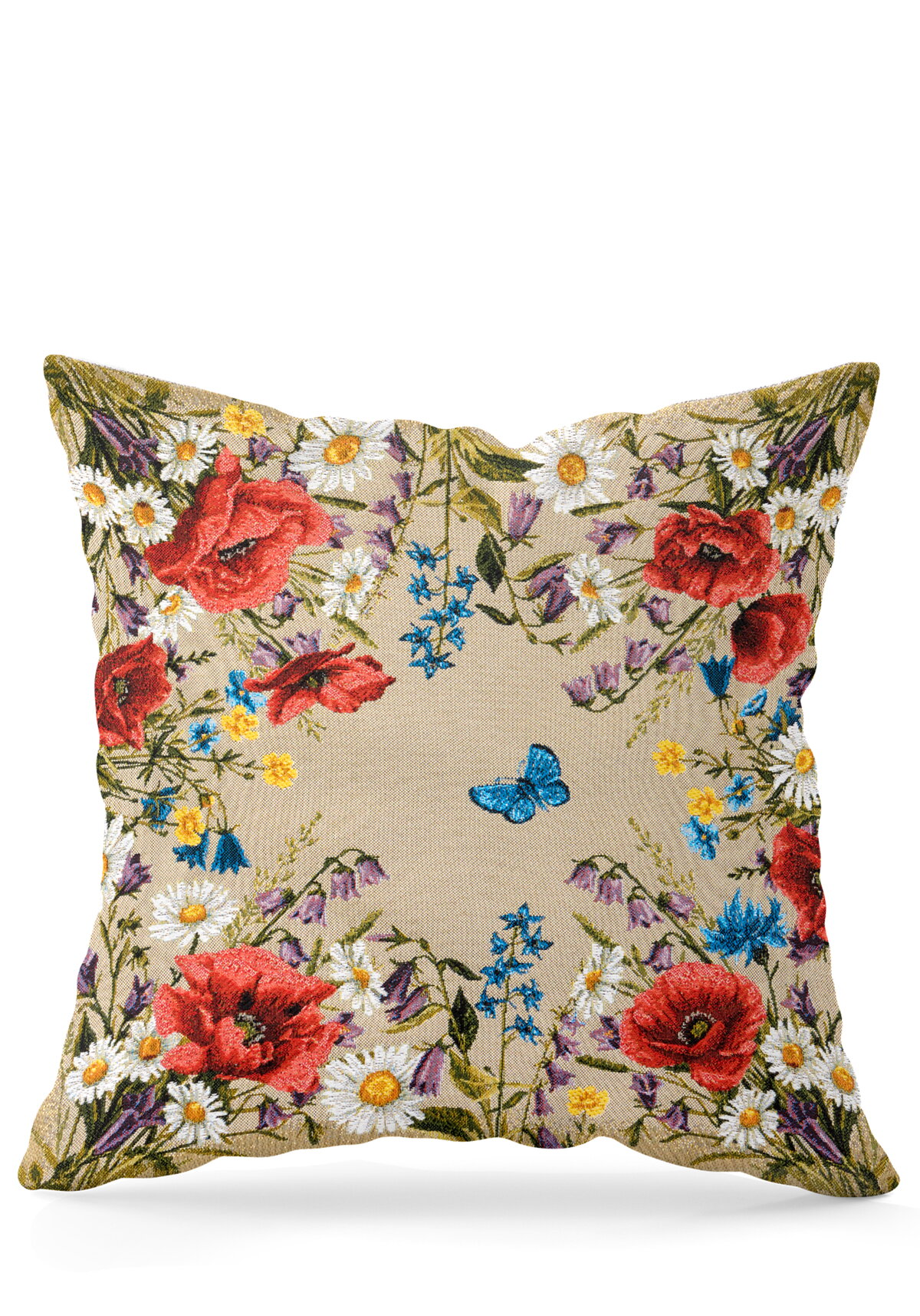 Наволочка выполнена из плотной и гладкой гобеленовой ткани, которая хорошо держит форму и легко очищается. Цветочный узор станет ярким акцентом в интерьере. Гобелен отличается высоким уровнем детализации изображения и практичностью в использовании.