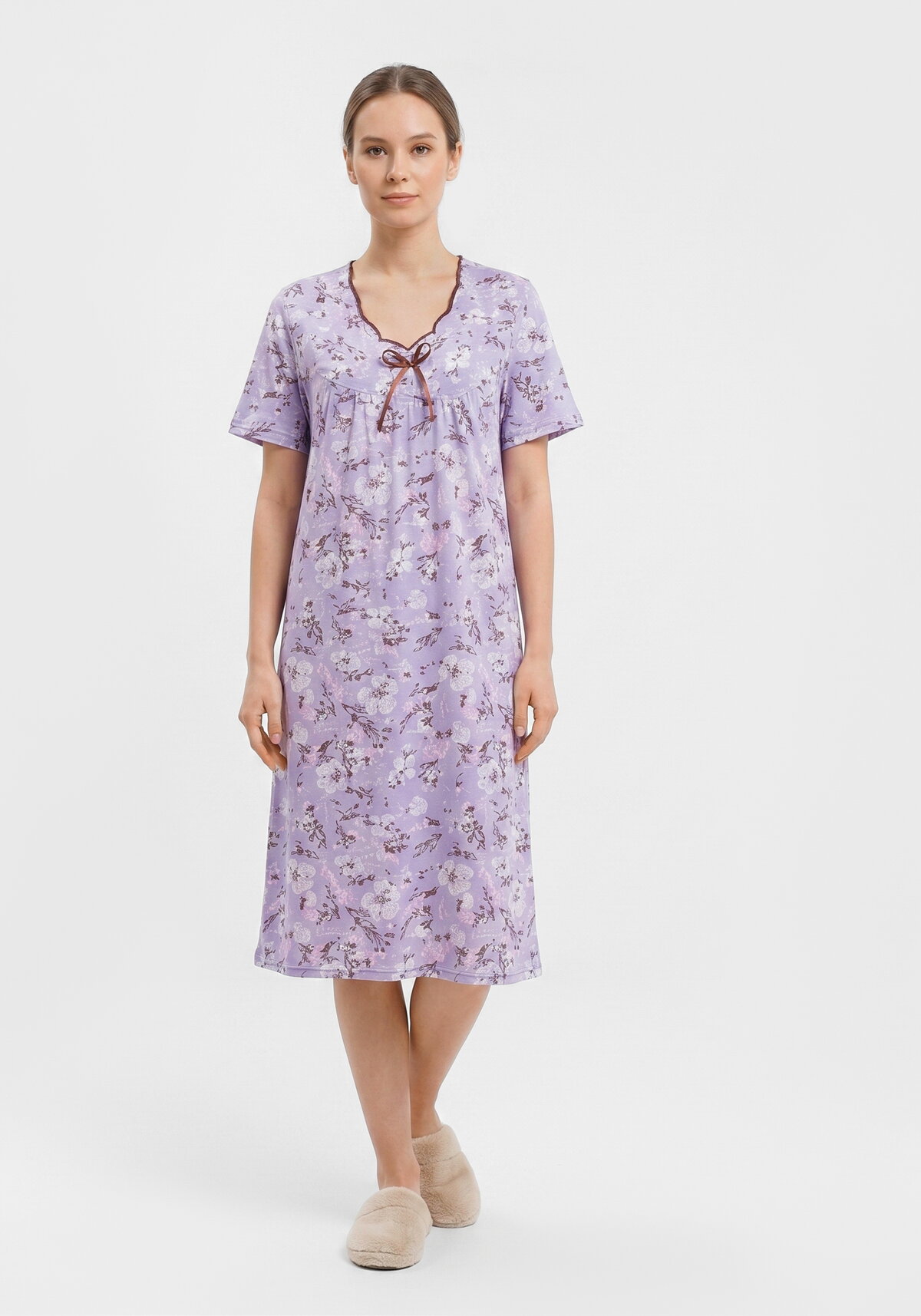 Погрузитесь в мир безмятежного сна с уютной ночной сорочкой из нежного хлопкового трикотажа — короткий рукав и продуманный крой подарят вам абсолютный комфорт от заката до рассвета. 100% хлопок с гипоаллергенными свойствами бережно заботится о коже, позволяя телу дышать и не вызывая никакого дискомфорта в самые нежные моменты отдыха. Прочный трикотаж кулирная гладь сохранит первозданный вид даже после множества стирок: сорочка останется такой же мягкой, яркой и аккуратной, как в первый день покупки!