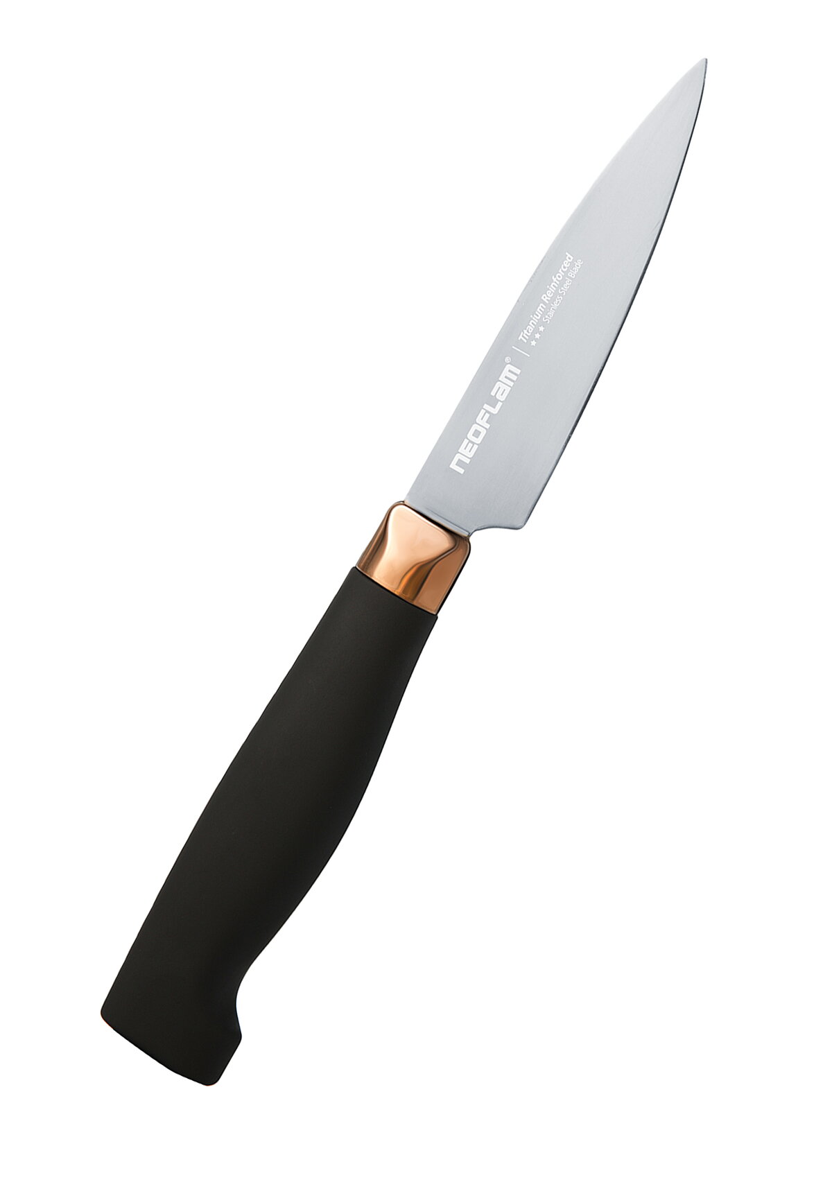 Лезвие этого ножа изготовлено из высококачественной нержавеющей стали. Ручка ножа выполнена из пластика с напылением TPR (термопластичная резина), что обеспечивает отличное сцепление и комфорт при использовании. Дизайн ручки не только функционален, но и эстетичен, придавая вашей кухне современный и стильный вид. Надежный и универсальный нож Neoflam Titanium станет вашим помощником в кулинарных приключениях.
