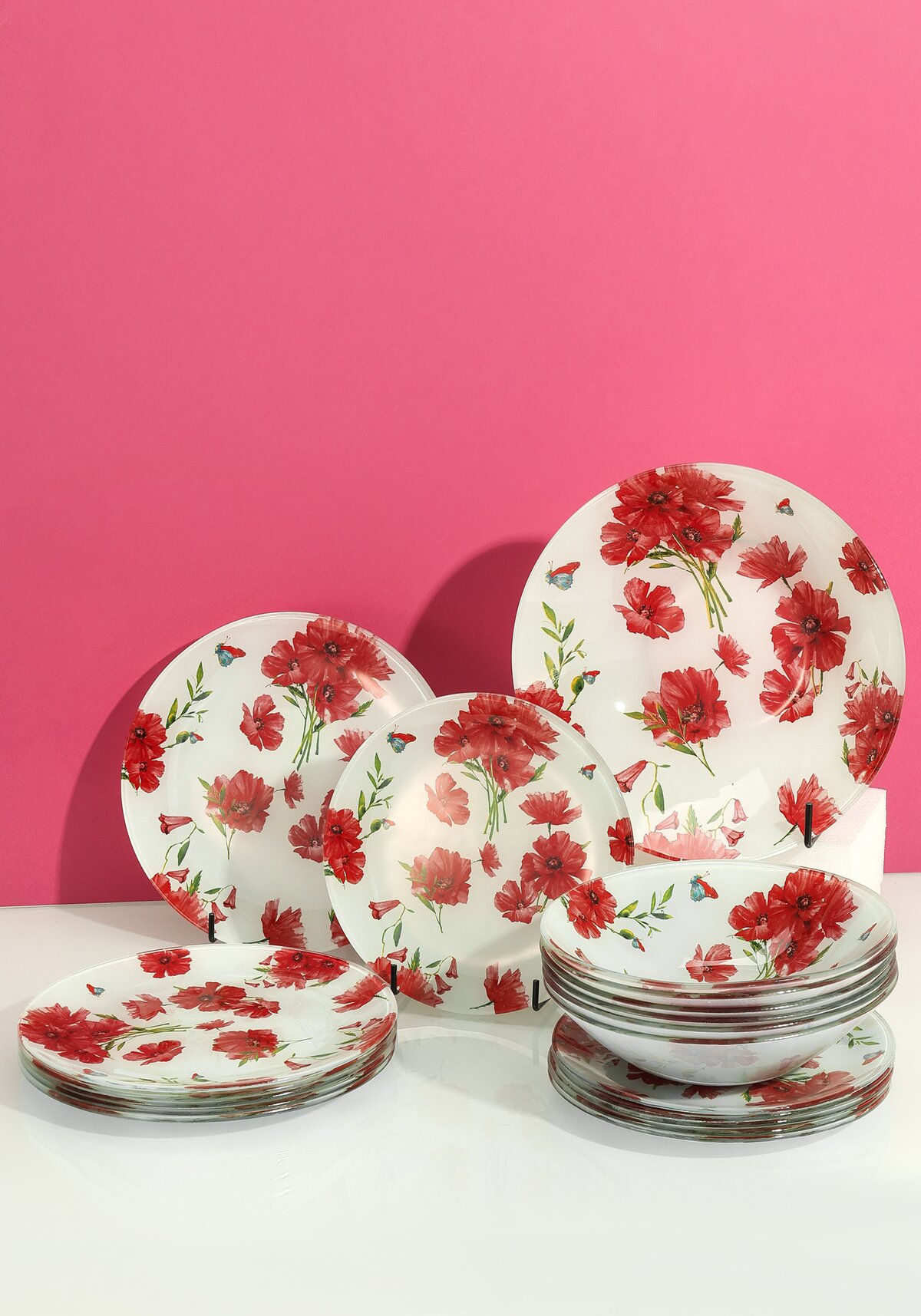 Комплектация: тарелка десертная (6 шт.) – 18 см, тарелка обеденная (6 шт.) – 20 см, миска (6 шт.) – 18 см (объем 550 мл), салатник – 22 см (объем 1250 мл)