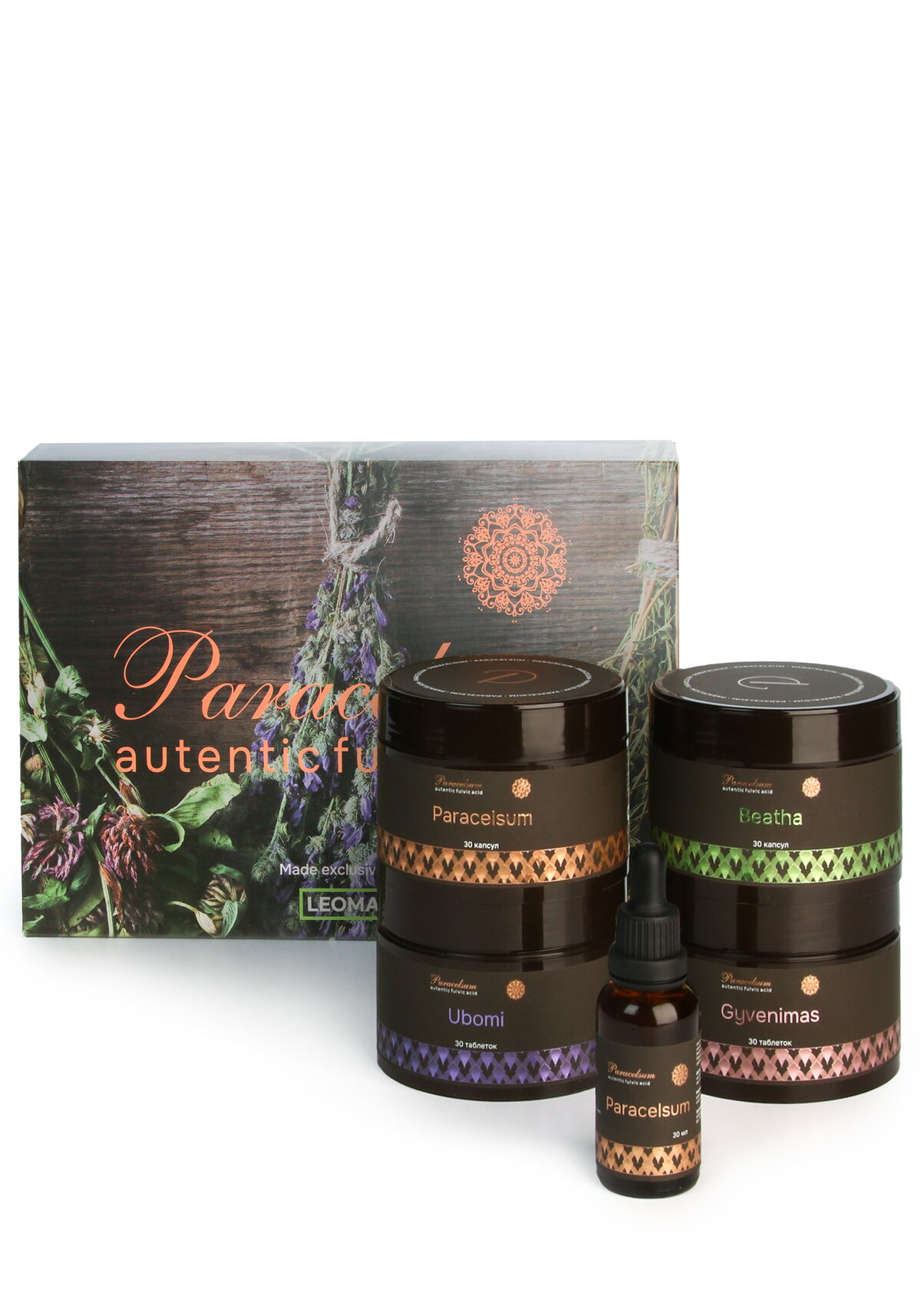 Комплектация: Paracelsum Ubomi (1 шт.), Paracelsum Beatha (1 шт.), Paracelsum Gyvenimas (1 шт.), Paracelsum — капсулы (1 шт.), Paracelsum — жидкая формула (1 шт.)
